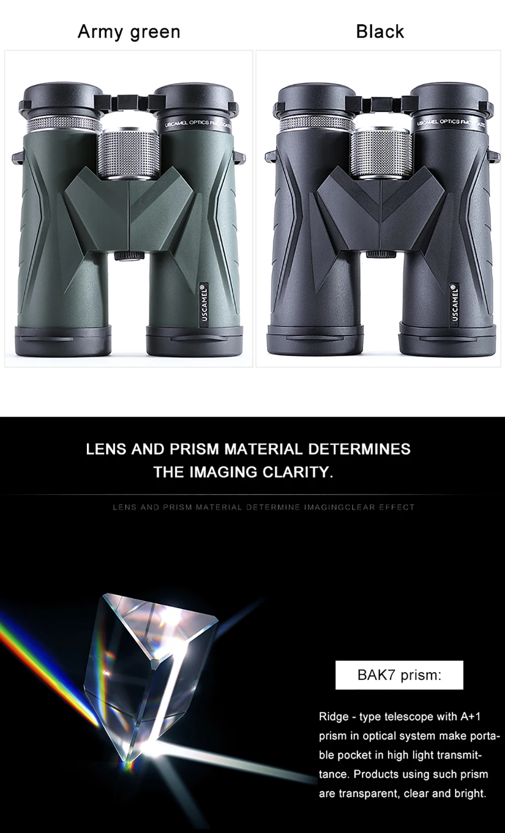Военный HD 8x42 10x42 бинокль USCAMEL Охота BAK7 водонепроницаемый телескоп зум оптика ночное видение Кемпинг Спорт на открытом воздухе