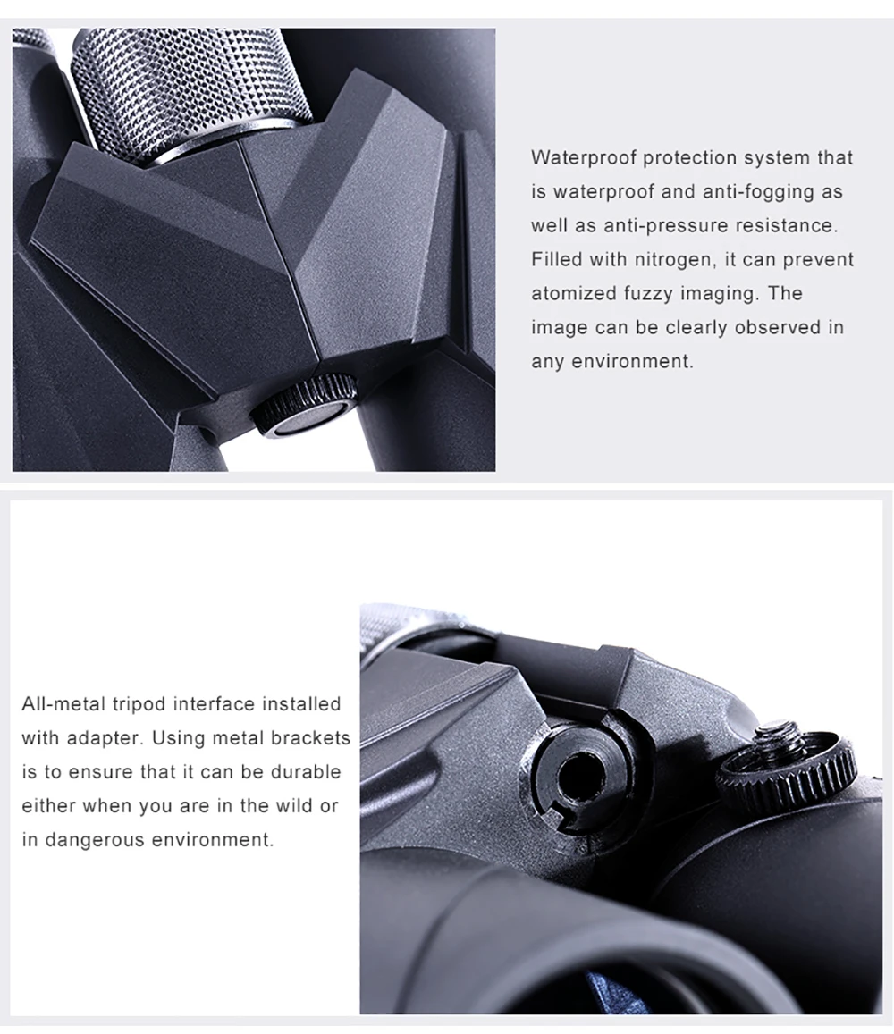 · Ультра-широкое поле обзора 303 ft / 1000 yds · 42 мм широкообъективный объектив, высокий коэффициент пропускания, четкое и яркое изображение, нет разницы в цвете, отличная производительность даже в условиях проблеска · BaK-7 призмы и многослойная зеленая пленочная оптика для превосходного разрешения и четкости изображения · Прочные магниевые шасси удобно держать и достаточно прочные, чтобы выдерживать любые условия. · Правая ручка регулировки окуляра: могут быть различия между зрением левого и правого глаз, можно регулировать с помощью четкости левого глаза, затем слегка повернуть правый окуляр диоптрическое кольцо непосредственно для достижения наилучших результатов. · Обтекаемый внешний вид, сильное чувство присутствия · Водонепроницаемость и защита от пыли-предотвращает попадание влаги, пыли и мусора в бинокль