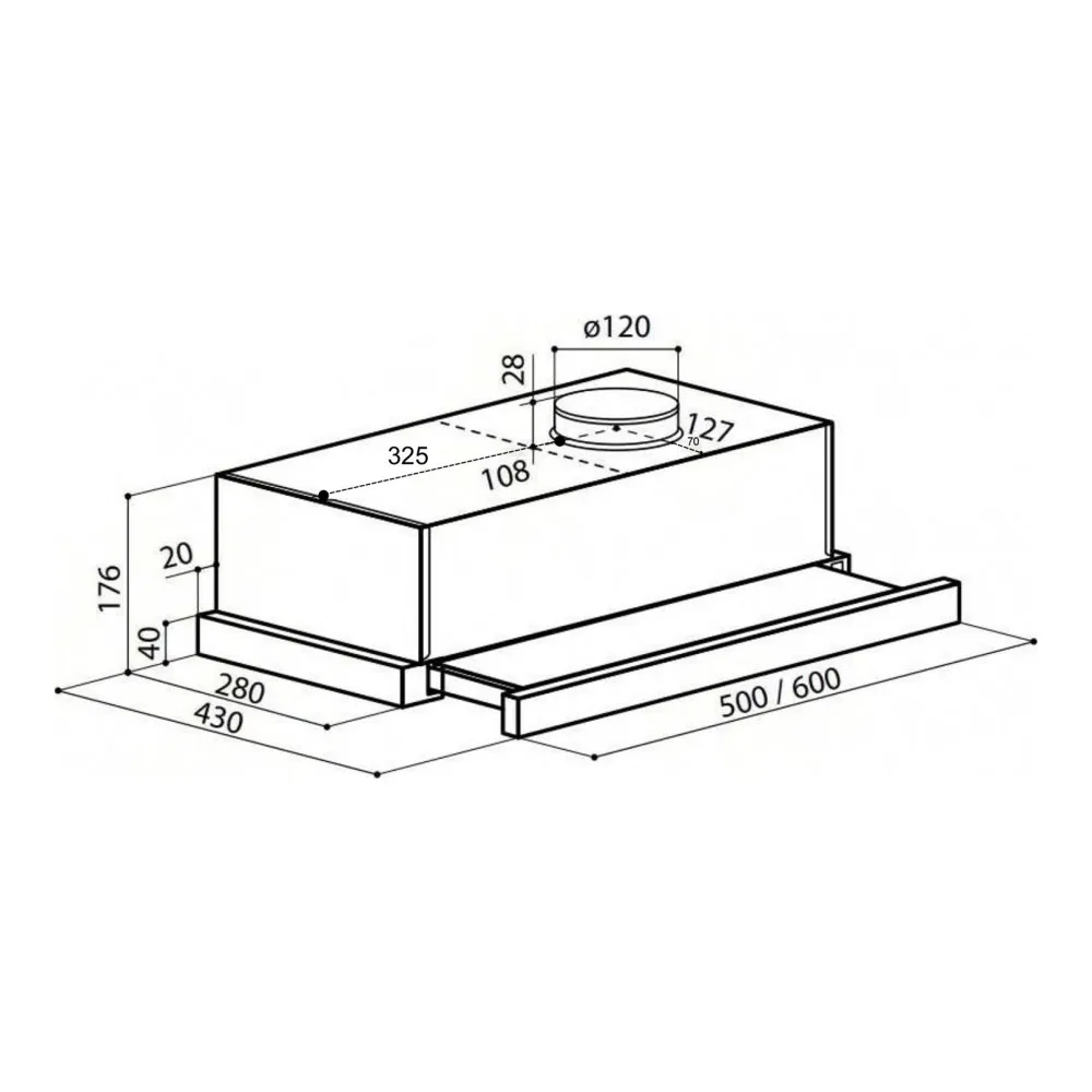 Country of Origin China Lighting Type LED lamp Timer No. Warranty 36 months Diameter pipe duct 120mm Number of engines 1 PCs Depth 28-43 cm Sliding panel Yes Operation modes Extraction/circulation An intensive mode No. Control type Mechanical Height 17.6 cm Maximum power consumption 202.5 W Number of speeds 2. Design DOMINO No. Display No. Type installation In the Closet Width 60 cm Color Beige \ White Indicator light pollution filter No. Performance 1000 m3/h Maximum noise level 52 DB Filter Fat Weight kg 6.5 kgAPPEARANCE CODE