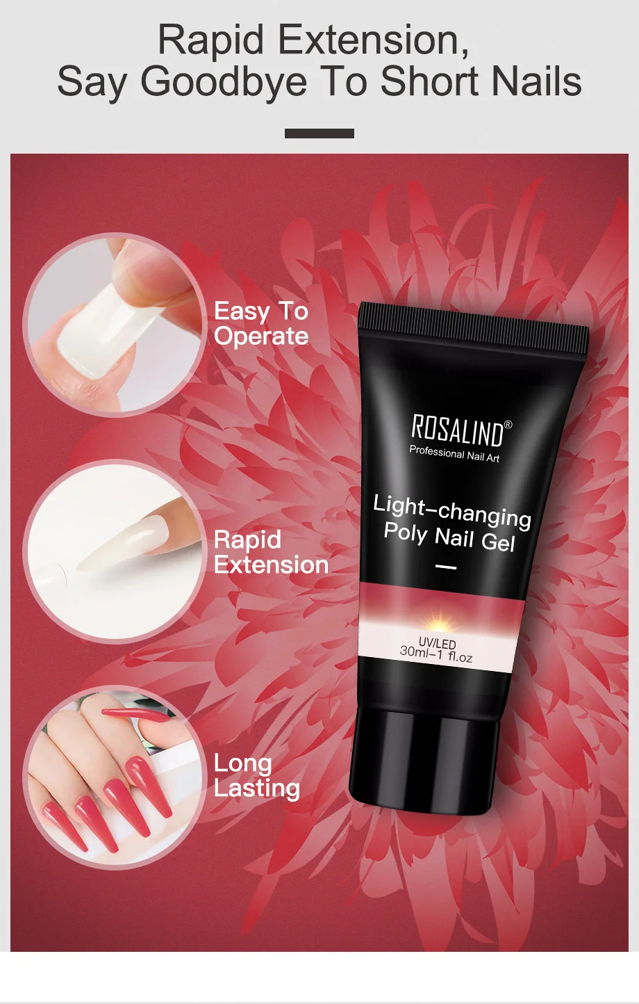 Характеристики Товара: Бренд: ROSALIND Название: полигель для ногтей, меняющий светильник Объем: 15/30 мл Цвет: 4 цвета Используется для: наращивания ногтей Излеченная: УФ/Светодиодная лампа Особенности: ногти меняют цвет под солнцем -Качество-наш первый приоритет. -Мы используем только органическую текстуру для защиты вашего здоровья. -Эффект сохранит 28 + дней. -Цвета на выбор, цвет меняется под солнцем. Шаг за шагом: 1. Используйте пилку для ногтей для формирования поверхности ногтей. 2. Нанесите базовое пальто. Лечение УФ/светодиодной лампой. 3. Используйте подходящую форму ногтя. 4. Нанесите достаточное количество полигеля для ногтей на модель ногтевой пластины. 5. Нанесите кристаллический гель в среднем на модель ногтей с помощью кисти. 6. Нанесите форму ногтя с помощью полигеля для ногтей. Излечивается УФ/светодиодной лампой. 7. Удалите модель ногтевой пластины после высыхания, Расширьте форму. 8. Нанесите верхнее пальто. Лечение УФ/светодиодной лампой. 9. Полный. Примечание: 1. Чистый объем составляет 15-30 мл. Так как емкость бутылки составляет более 15-30 мл, светильник, меняющий полигель для ногтей, не будет полностью заполнен бутылкой!