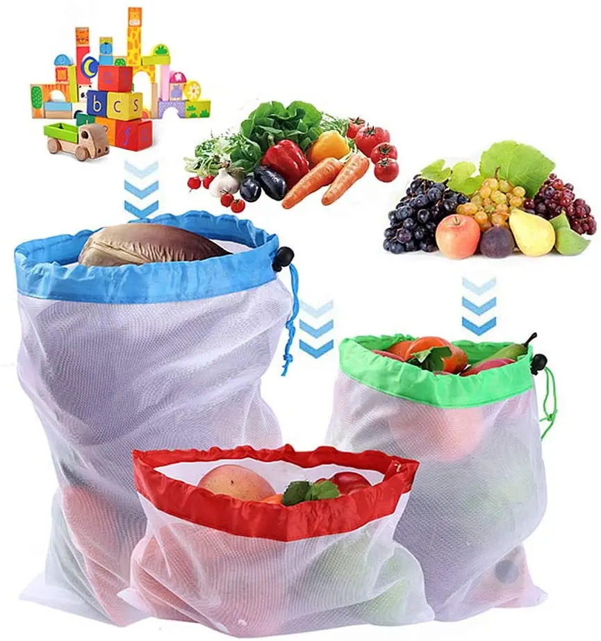 12 шт многоразовые сумки для производства моющиеся экологически чистые сетчатые сумки для продуктов питания, магазинов, фруктов, супермаркетов, игрушек для хранения овощей
