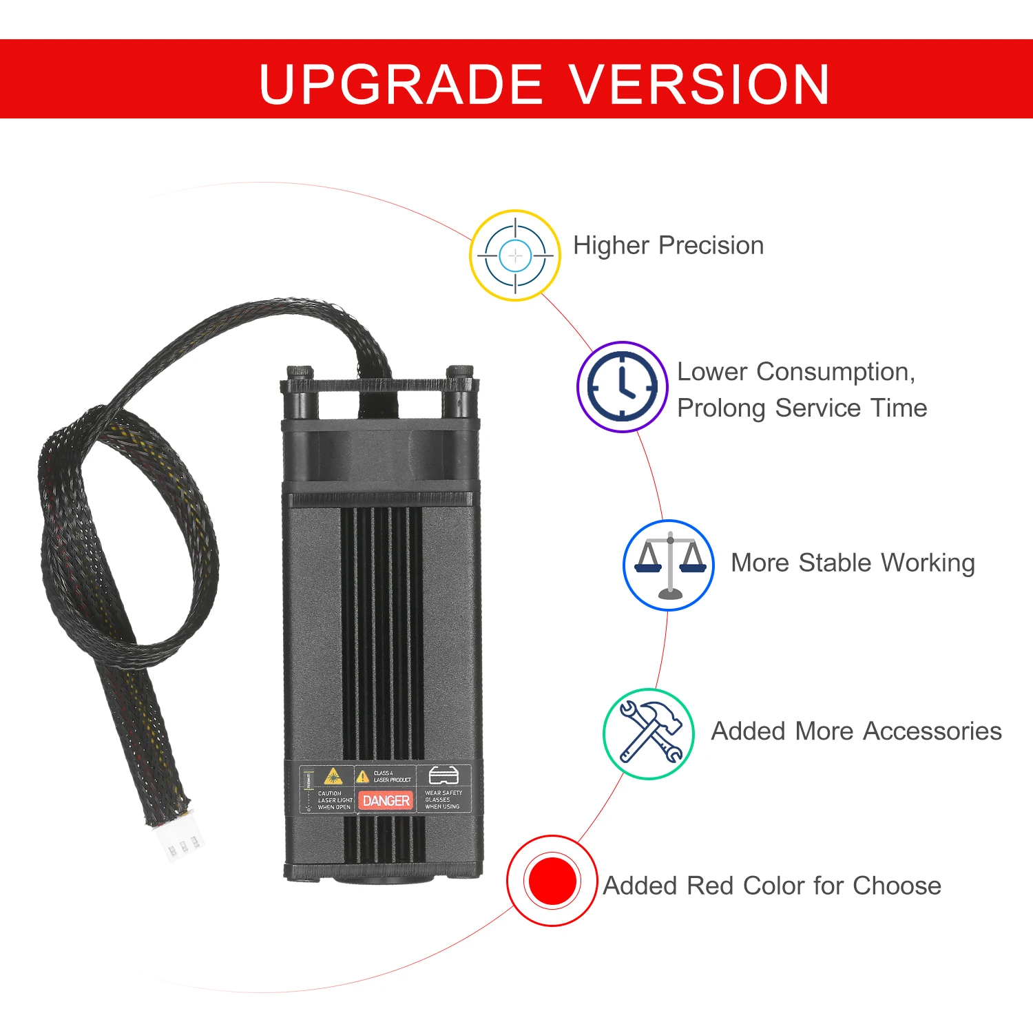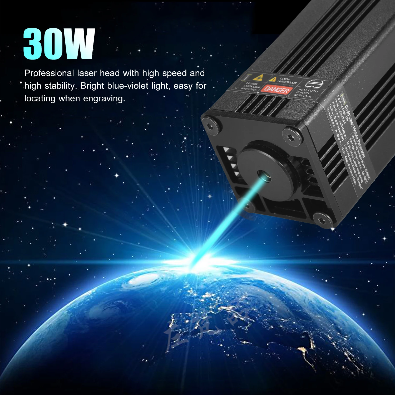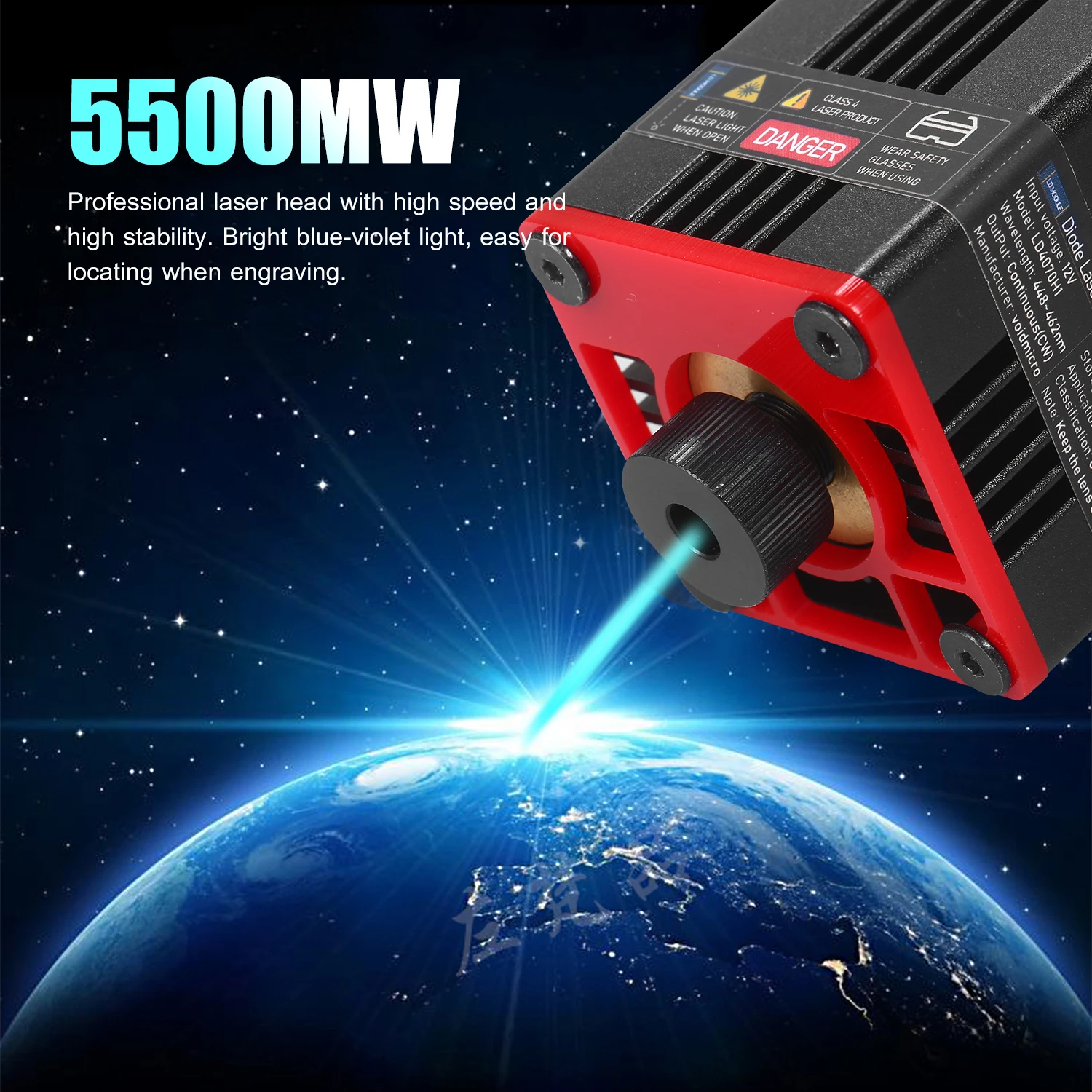 Усовершенствованный синий лазерный модуль --- профессиональная лазерная головка имеет обновление с более низкой потерей и высокой точностью и поддерживает высокую скорость и высокую стабильность, в то же время продлевает время обслуживания лазера modual. Ярко-сине-фиолетовый светильник, легко устанавливается при гравировке.