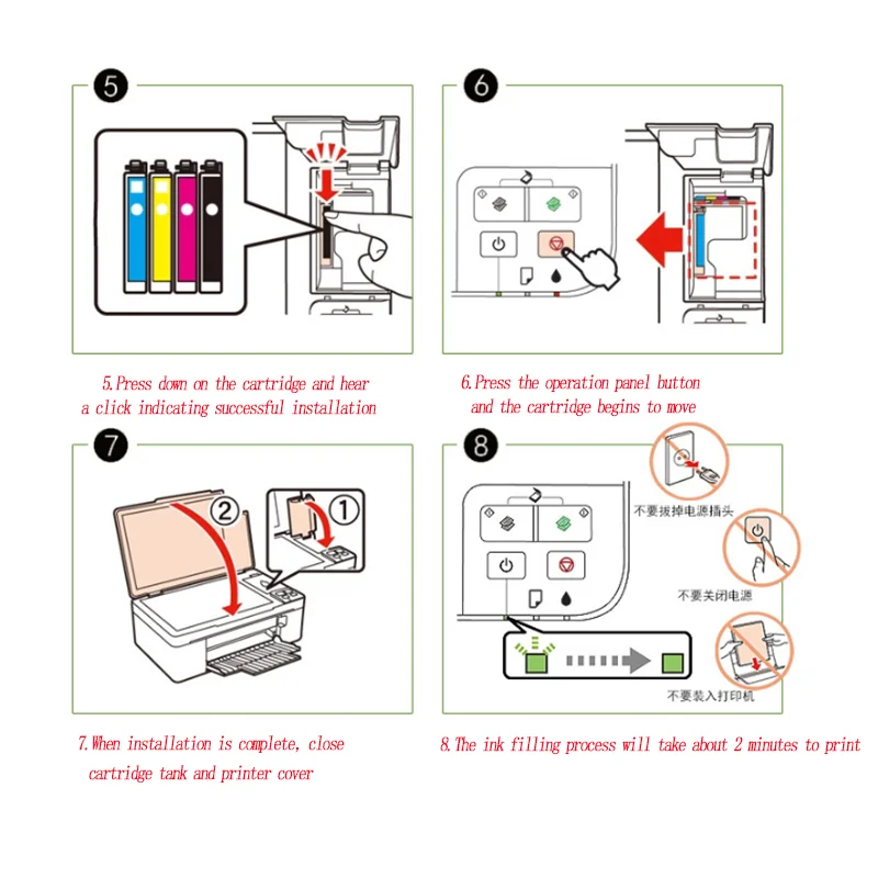 4. Cartuccia di inchiostro colore deve abbinare bene con la cartuccia slot, assicurarsi che essi sono sul posto giusto quando si installa in priner.