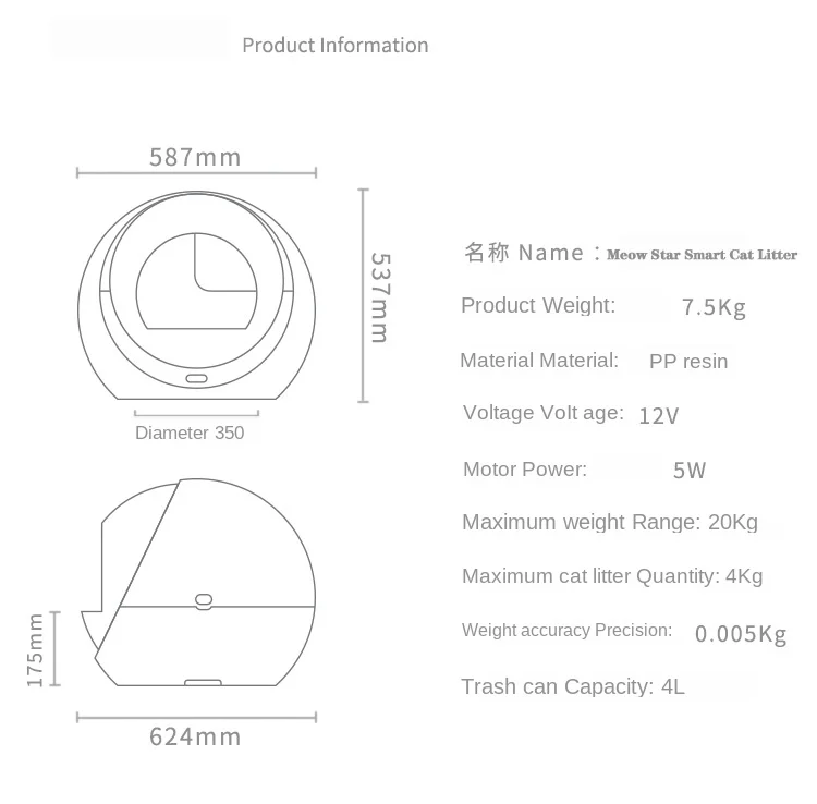 Название продукта и технические характеристики Высококачественная ПЭТ автоматическая самоочищающаяся коробка для кошачьего туалета, умная мусорная корзина, закрытый лоток для туалета Съемная горшка Особенности продукта и материалы Здоровый полипропиленовый материал Самоочищающаяся вращающаяся очистка экономит время Большие дверные отверстия, в соответствии с привычкой кошки играть Фильтровать педаль мусора, чтобы держать пол в чистоте Разборка одним касанием, легко моется Название продукта: кошачий Туалет Материал: полипропиленовая смола Характеристики: 24,5 × 23,1 × 13,7 дюйма (62,4 × 58,7 × 35 см) Использование: помощь в обучении домашних кошек в туалете Цвет: как показано на картинке, пожалуйста, обратитесь к фактическому продукту Вес: 7,5 кг Напряжение: 12 В Мощность двигателя: 5 Вт Диапазон: 20 кг Емкость: 4л/4кг Содержит: кошачий Туалет * 1 Меры предосторожности: -Не размещайте устройство непосредственно или рядом с теплоотводом. -Не кладите предметы в блок, не беспокойте данные и не повреждайте оригинал. -Пожалуйста, поместите устройство в горизонтальное стабильное положение, чтобы избежать вибрации и беспокоить измерение данных. -Не помещайте устройство в прямую воду или влагу, чтобы предотвратить повреждение электронных компонентов. -Не размещайте устройство на мягкой поверхности (ковёр и т. д.) во избежание помех при измерении данных. -Рекомендуется использовать водопоглощающий бентонитовый кошачий помет.