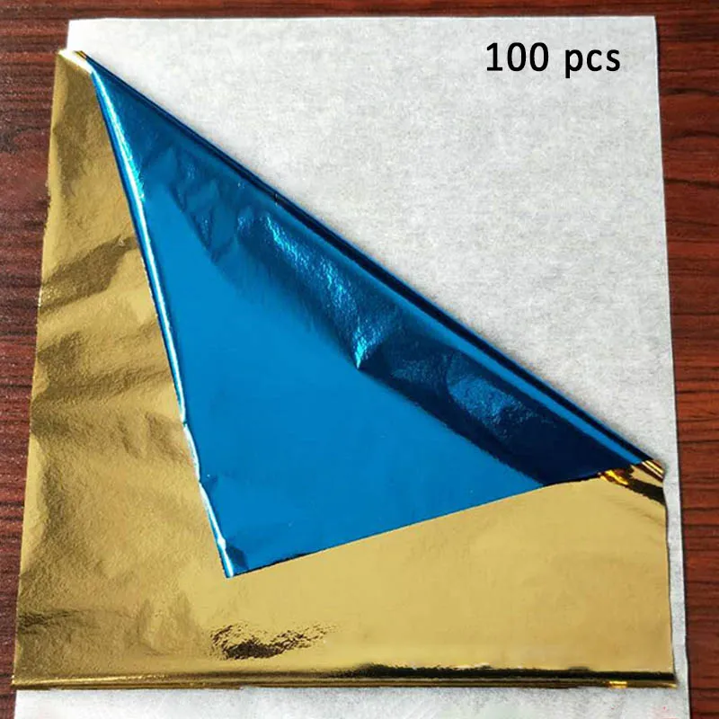 Имитация золотого, серебряного, золотого цвета, позолота, алюминиевая фольга, фольга, бумага 100 листов/упаковка 14*14 см, художественная бумага для поделок, украшения своими руками