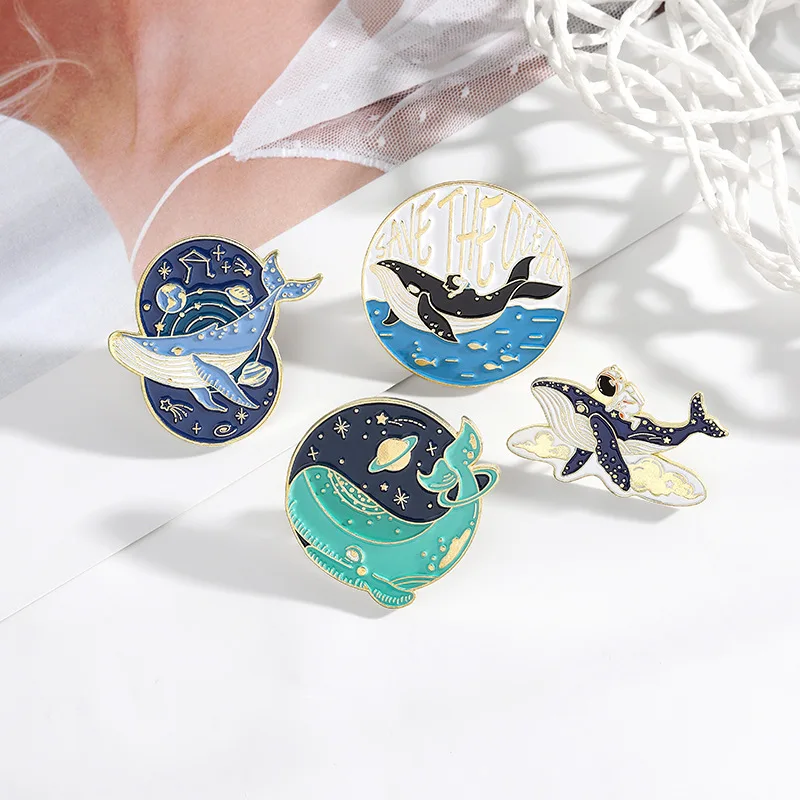 Save the Ocean Enamel Custom Pin Adventure Space Astronaut and Whale Ocean Brooches Bag Lapel Pin Badge Jewelry Gift for Friends MOQ:1PCS SIZE: AS THE PICTURE SHOW