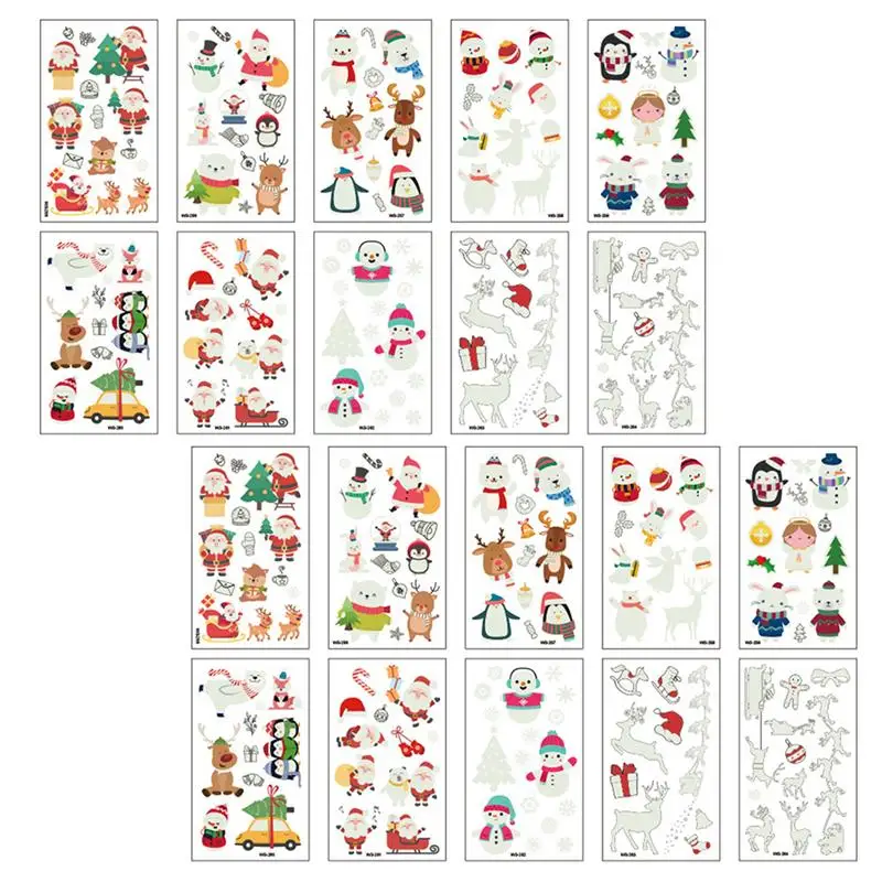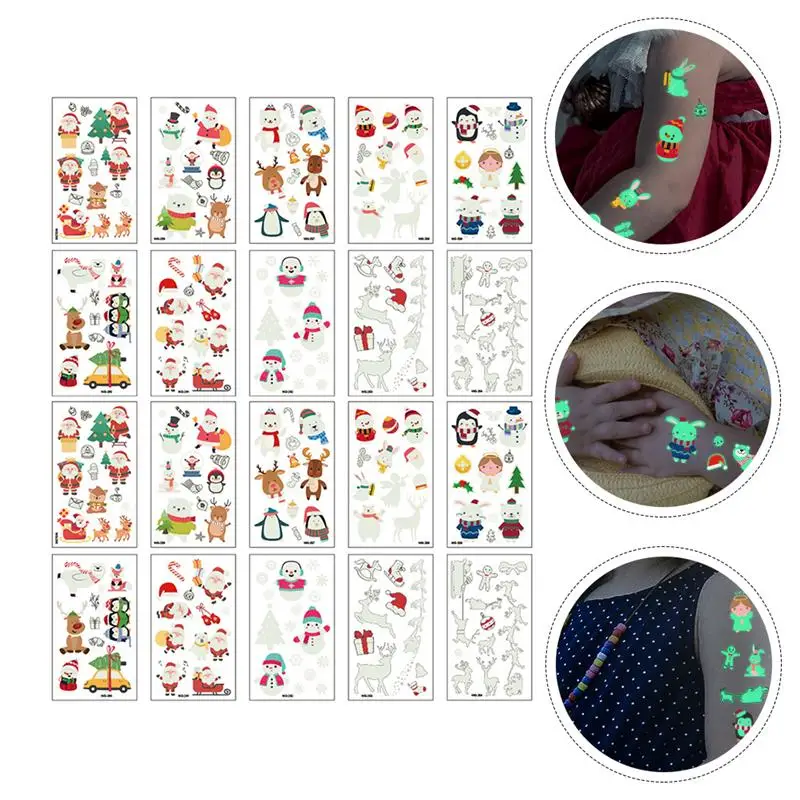 20 листов, рождественские наклейки для татуировок, светящиеся наклейки для лица тела, наклейки-тату, флуоресцентные татуировки для наклейки в стиле боди-арт