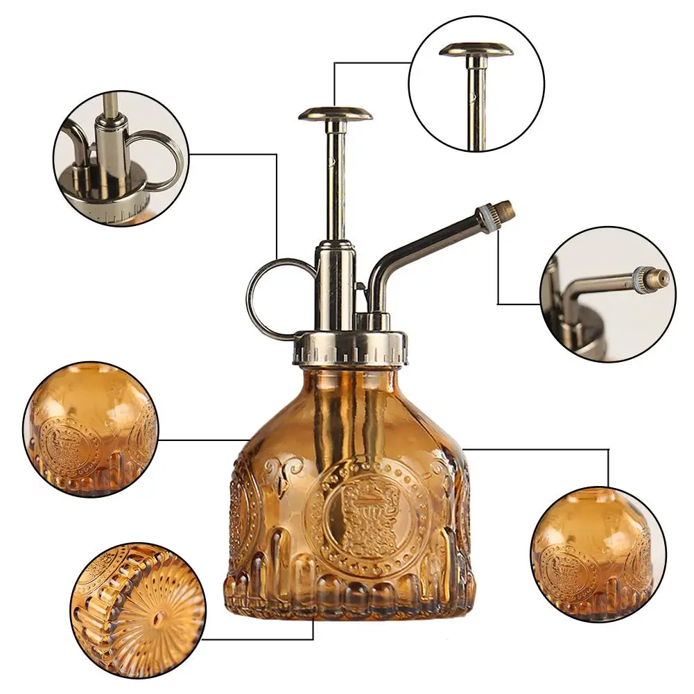1. Материал PVB: корпус стеклянной бутылки делает общий полив ярче, может быть помещен рядом с цветком, украшение более красивое.При использовании, пожалуйста, старайтесь не заполнять его водой, чтобы давление не было достаточно, чтобы распылить воду слишком близко, и вы не будете чувствовать усталость.