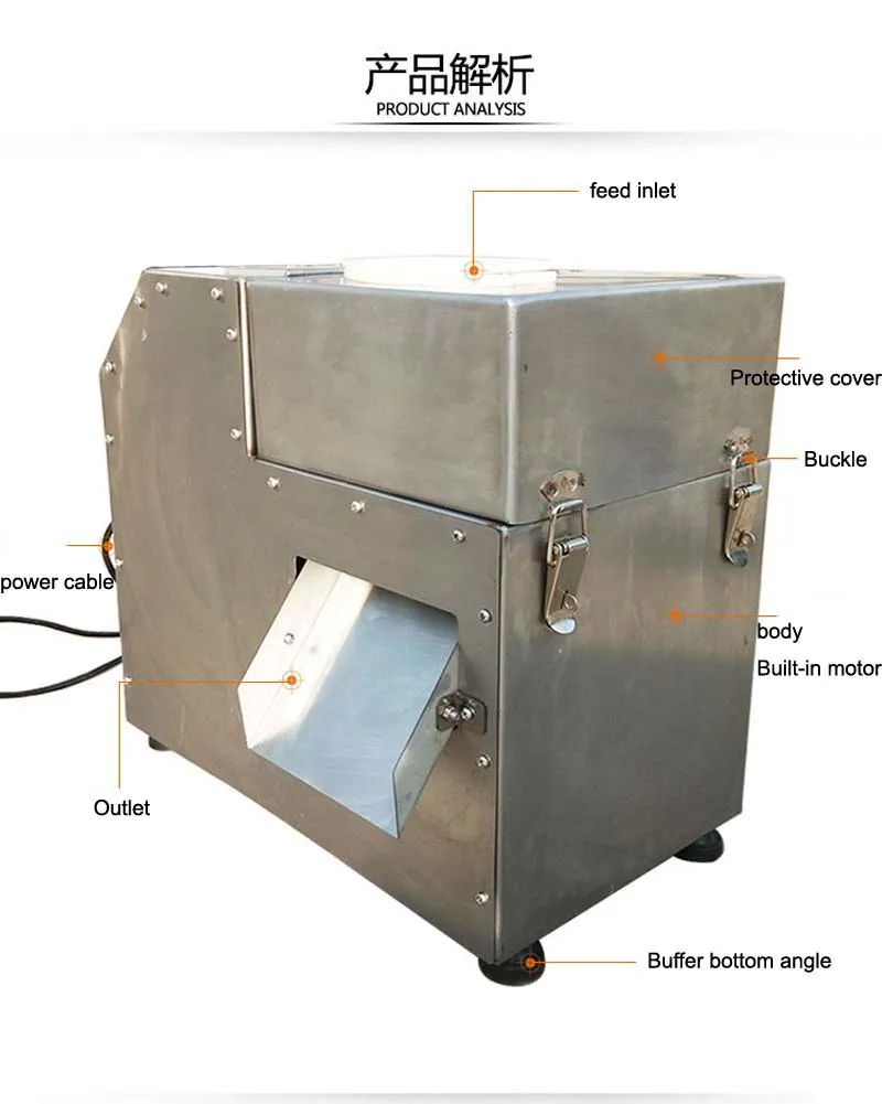 1. Стабильная производительность 2. Сильный двигатель 3. Стальное лезвие 4. Нержавеющая сталь 5. Эффективная резка 6. Энергосбережение и защита окружающей среды 7. Низкий уровень шума 8. Хорошее качество