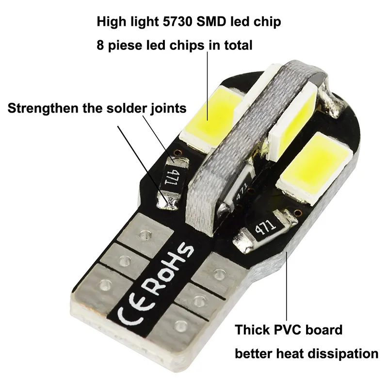 10 шт W5W 8SMD 5630 светодиодными излучателями.