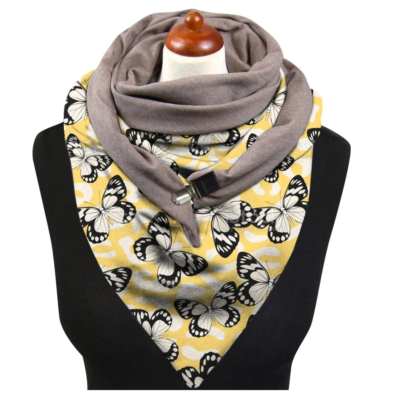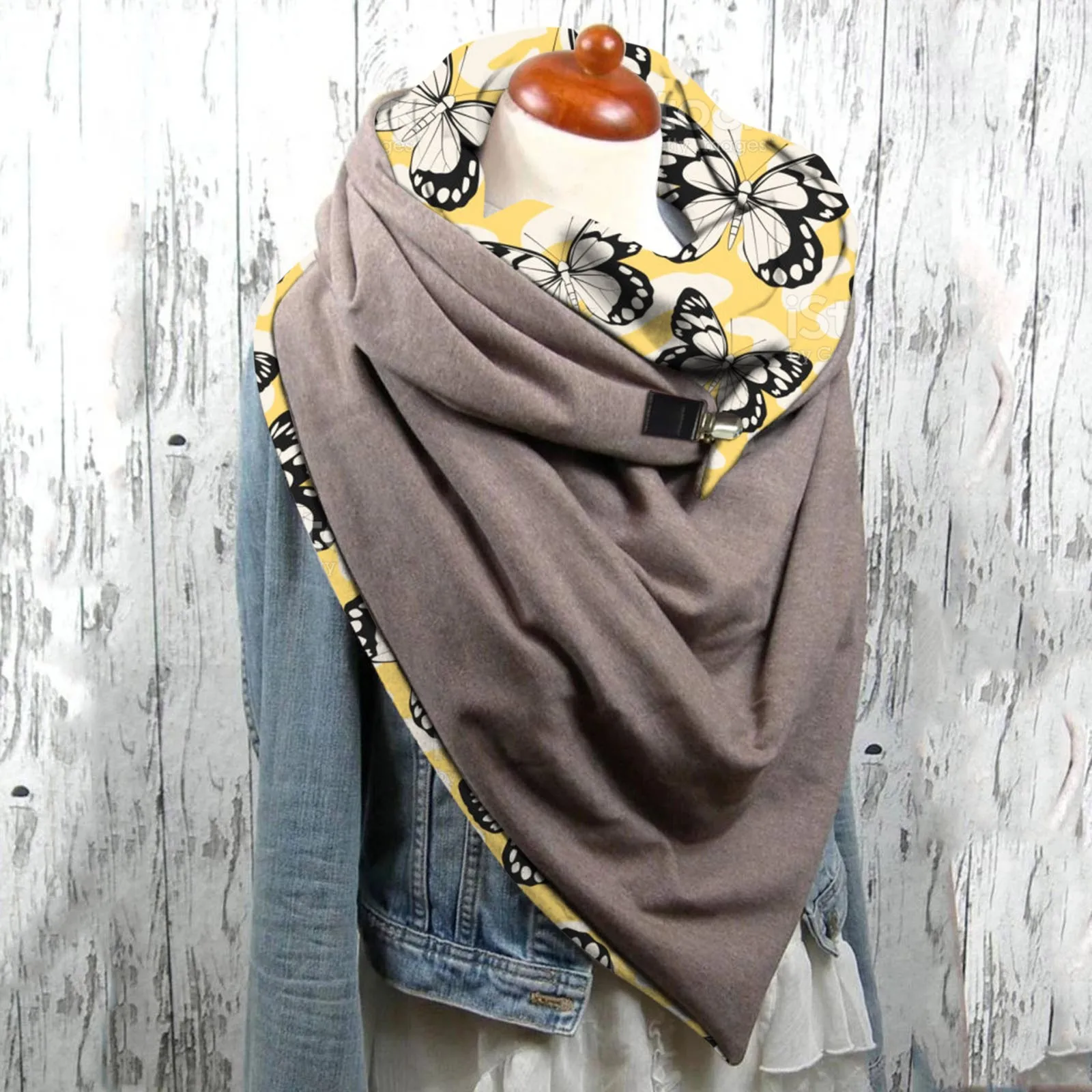 Модные женские мягкие повседневные теплые шарфы на пуговицах с принтом бабочки