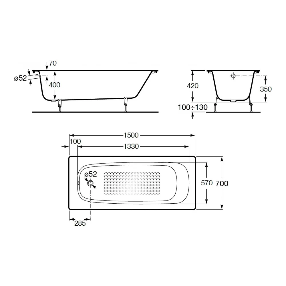 Additional information: cast iron bath Roca Continental 150x70-ideal for small bathrooms, many residents of megacities would like to buy a convenient bathroom for a small apartment, but not only. And from a functional point of view, the most appropriate option for such housing.