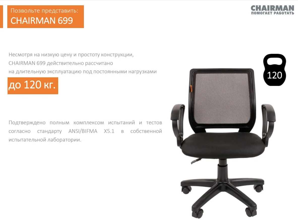 Упругая спинка сетка с поясничным упором, удобные подлокотники из пластика, крепкие колеса.