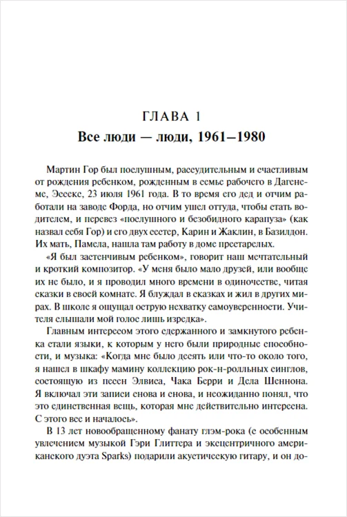 Книга Depeche Mode: Music Legends & Idols – единственная в своем роде подлинная авторизированная биография группы Depeche Mode, написана совместно с музыкантами – веселая, зачастую экстремальная и порой разрушительная история о трех совершенно разных личностях, которые в настоящее время формируют Depeche Mode.