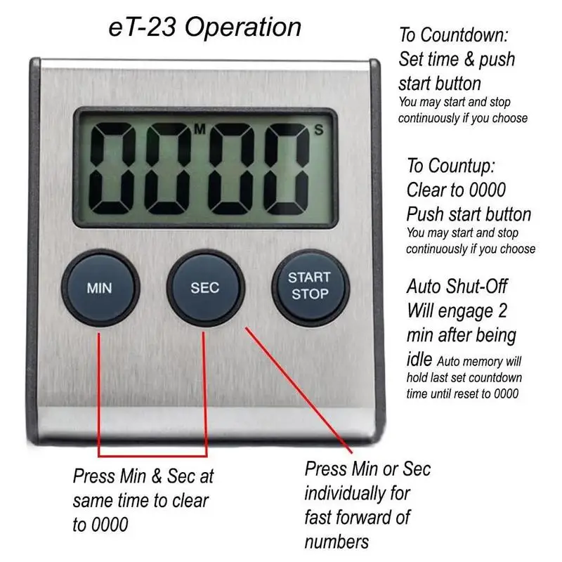 Description: description: Large digital screen: This kitchen timer has a larger and clearer LCD display, easy to read the time, and effortlessly displays bold numbers, which is perfect for those with poor eyesight. Easy to store and carry, light and simple to cook. Up and down counting: The maximum time of the digital kitchen timer is 99 minutes and 59 seconds. The kitchen timer with bold numbers is easy to read. The digital timer was loud and clear, but no deafening sound could be heard from another room. According to user needs, we adjust the volume. The perfect timer for kitchens, gymnasiums, examination rooms, barbecue grills, medical, dental and hair salons. Color: as shown in the picture. Material: ABS and stainless steel Size: 7.9x4.2x1cm packing list: 1 digital kitchen timer (battery included) note: 1. Due to the difference in light and screen, the color of the project may be slightly different from the picture. 2. Due to manual measurement, please allow a difference of 0.5-2 cm. Preview: