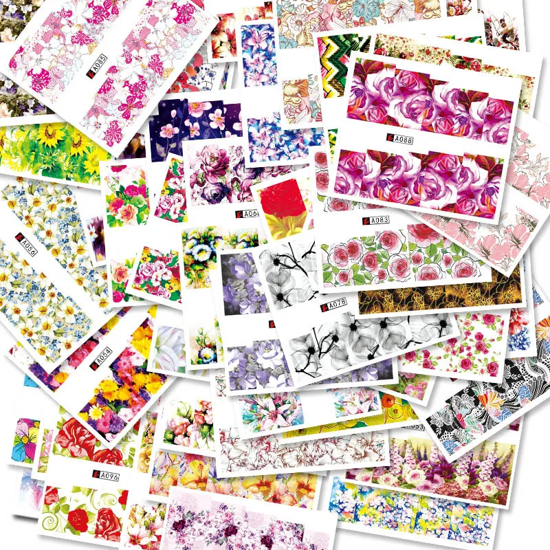 50pcs Mix Colorful Full Nail Flower Nail Art Water Transfer Sticker Nail Sticker Sets for Gel Polish Manicure Decals