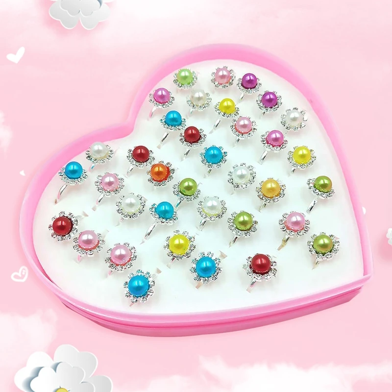 12/36 шт/коробка Регулируемые кольца из сплава для маленьких девочек модные детские кольца с рисунками из мультфильмов для девочек, вечерние кольца в форме сердца