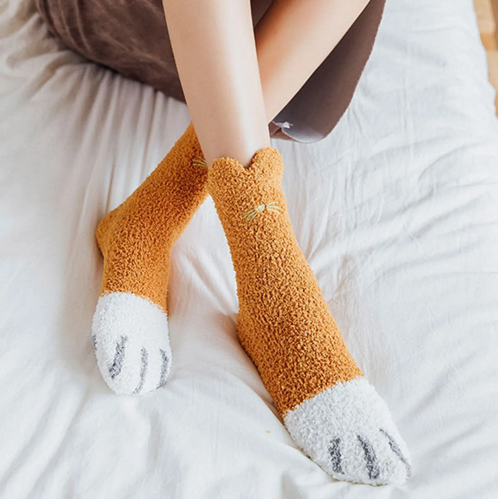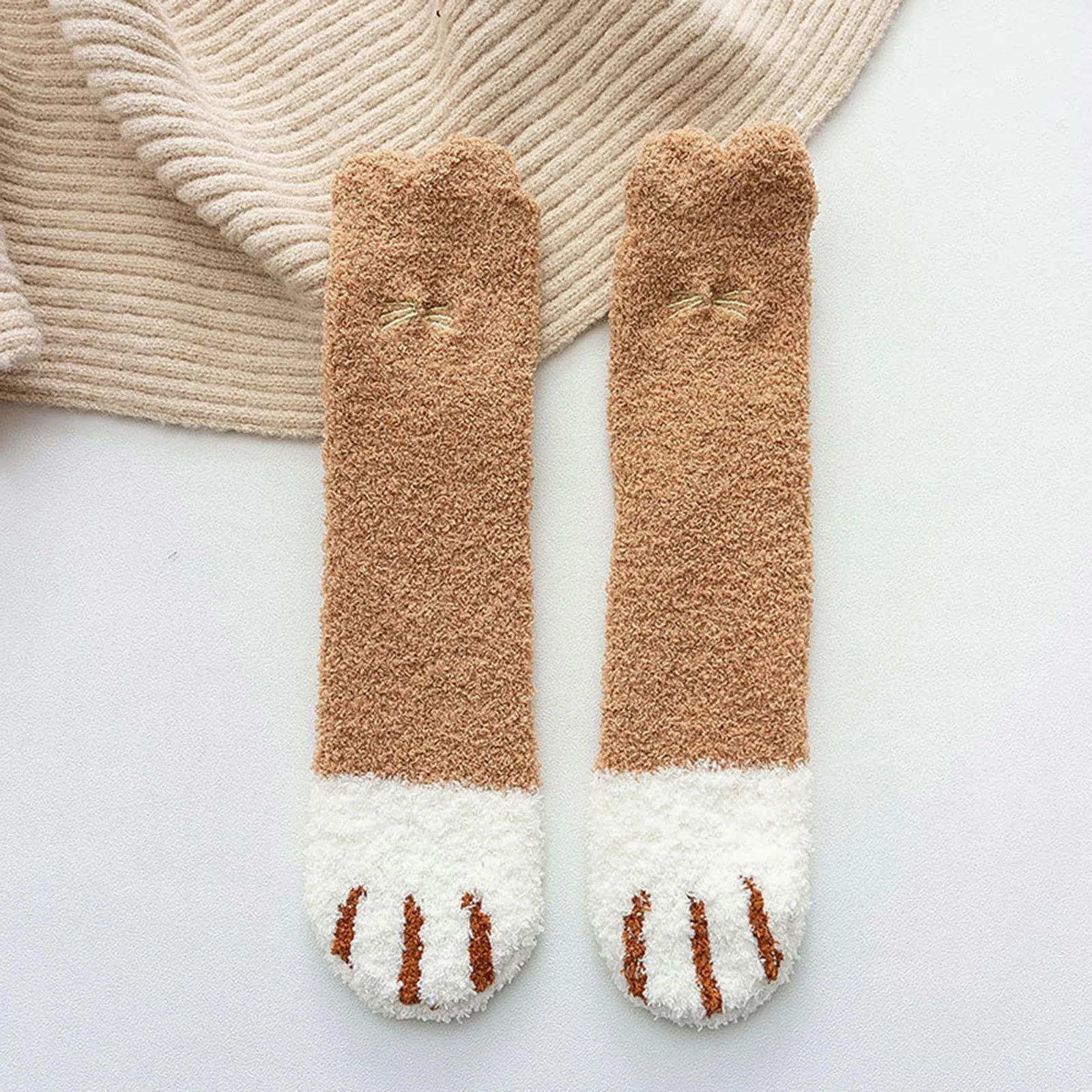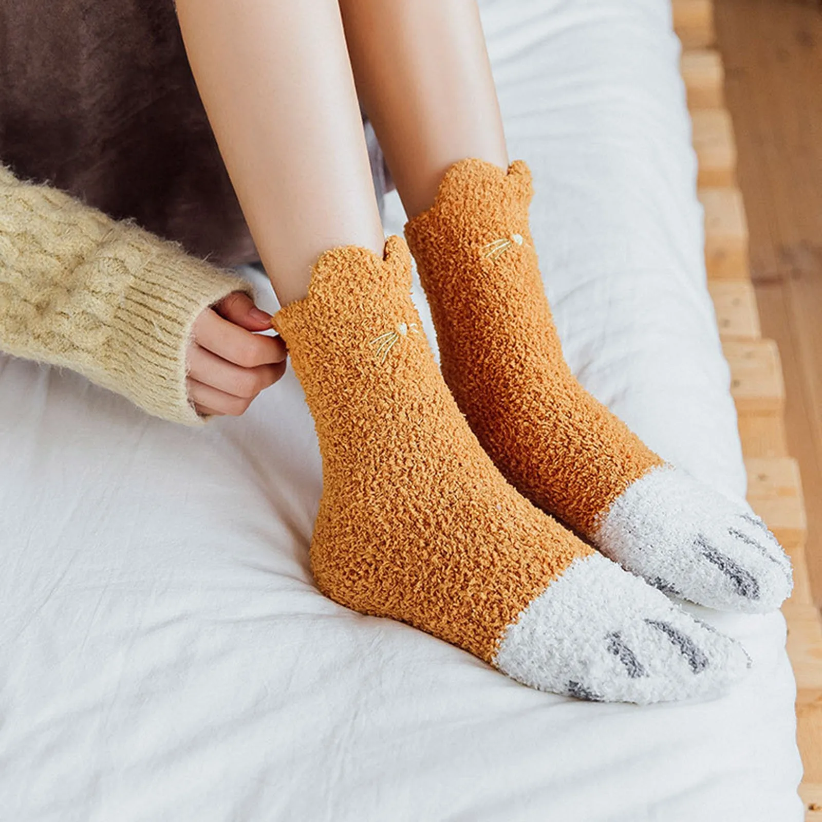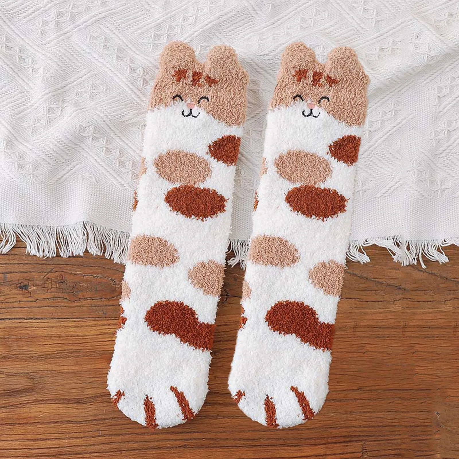 1 пара женских осенне-зимних утепленных бархатных носков кораллового цвета