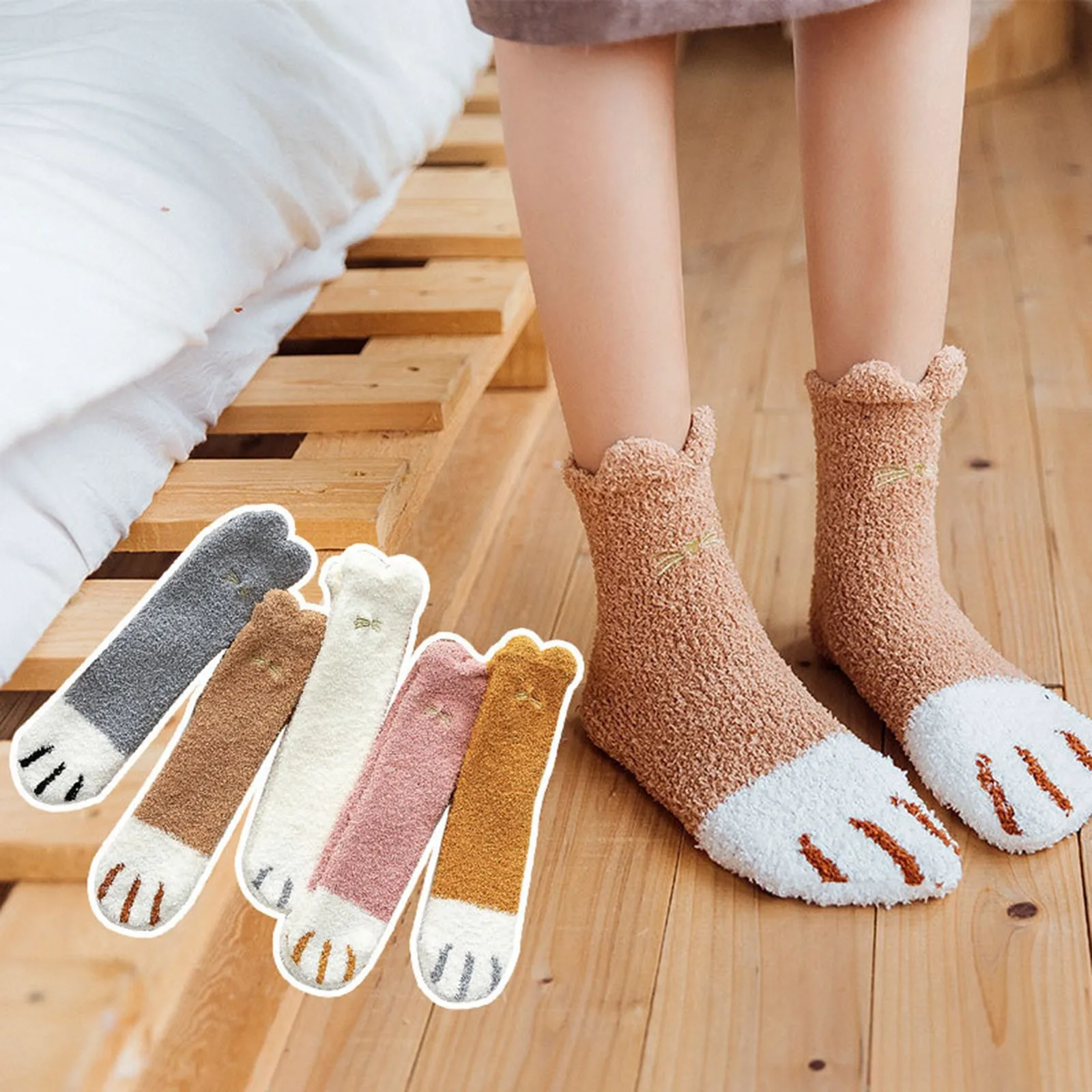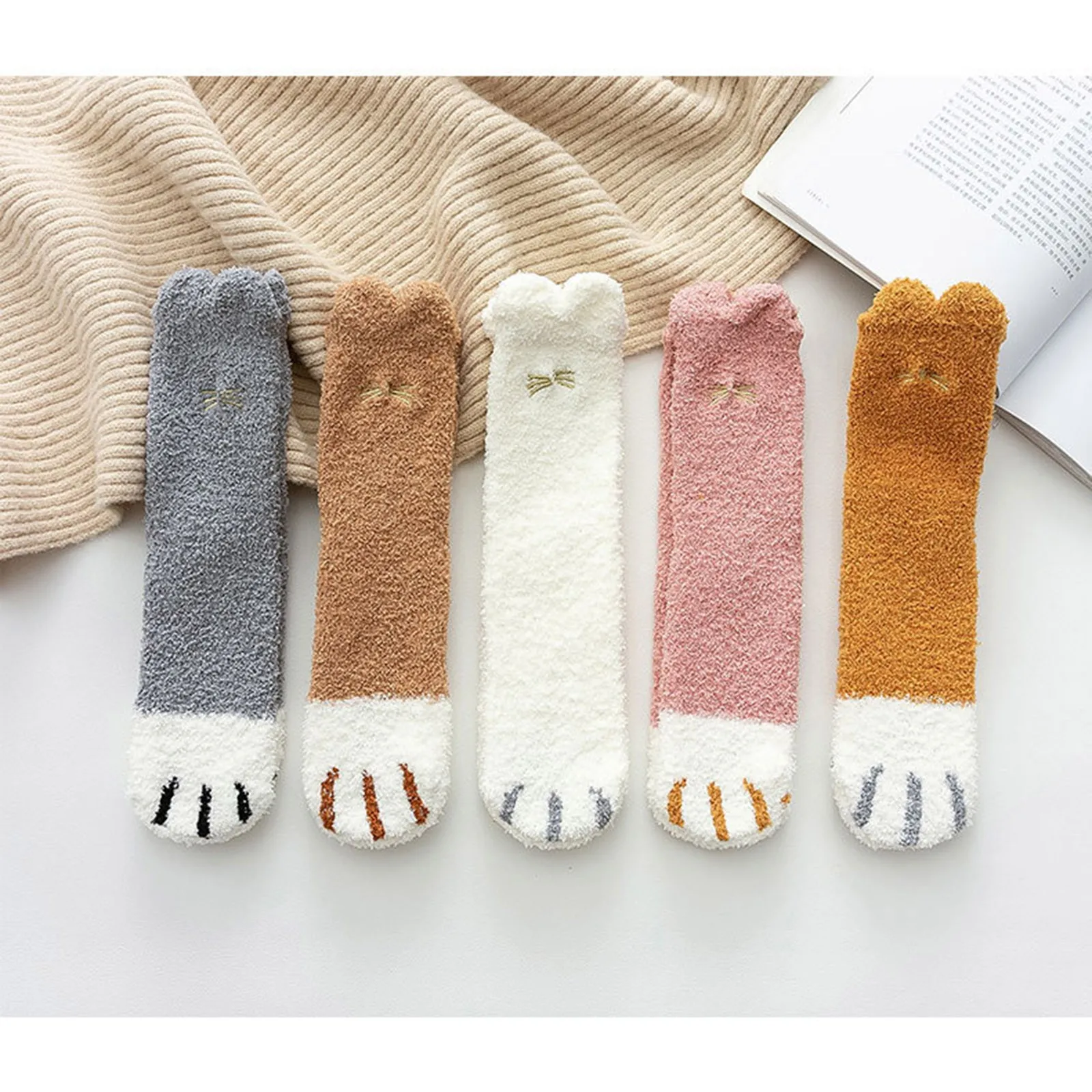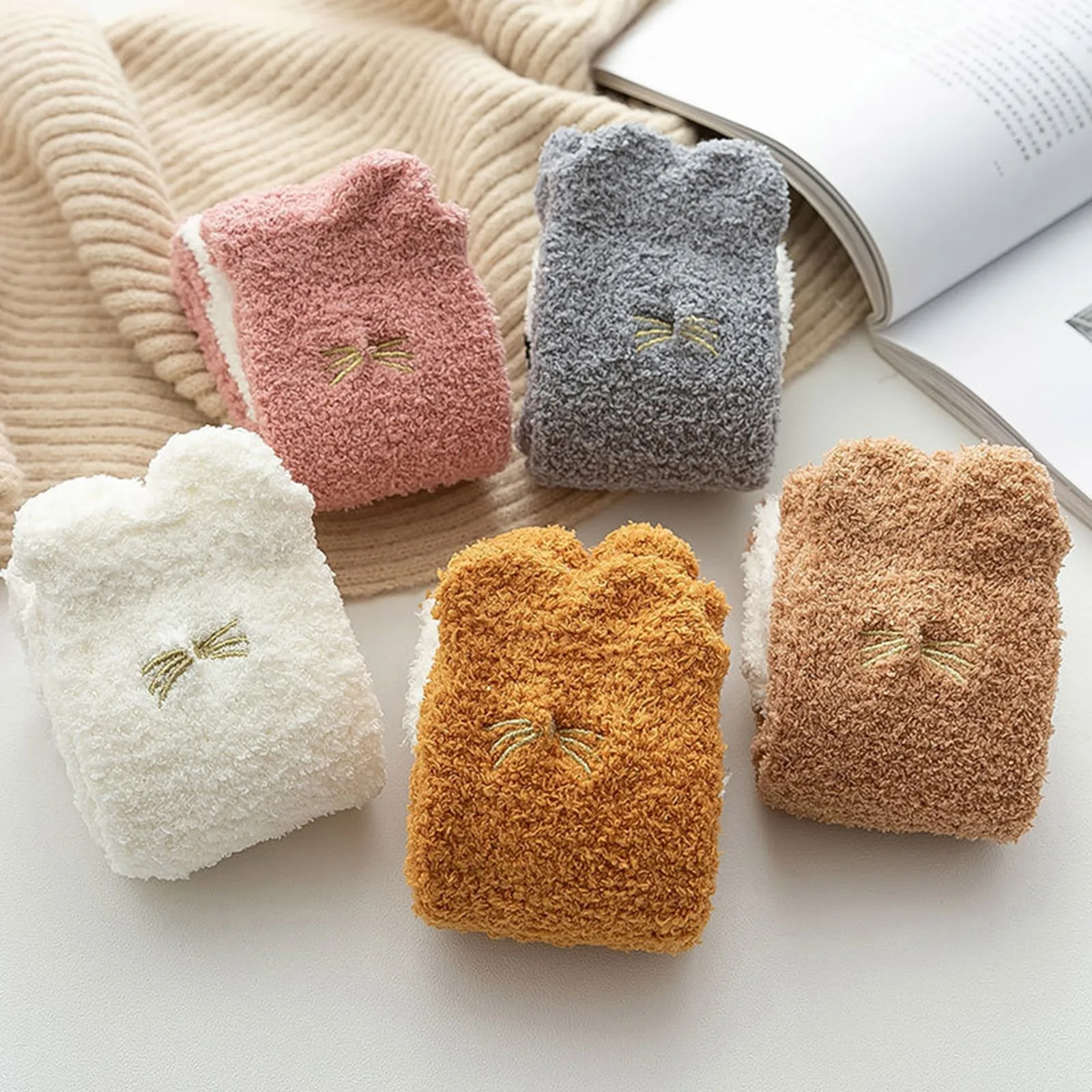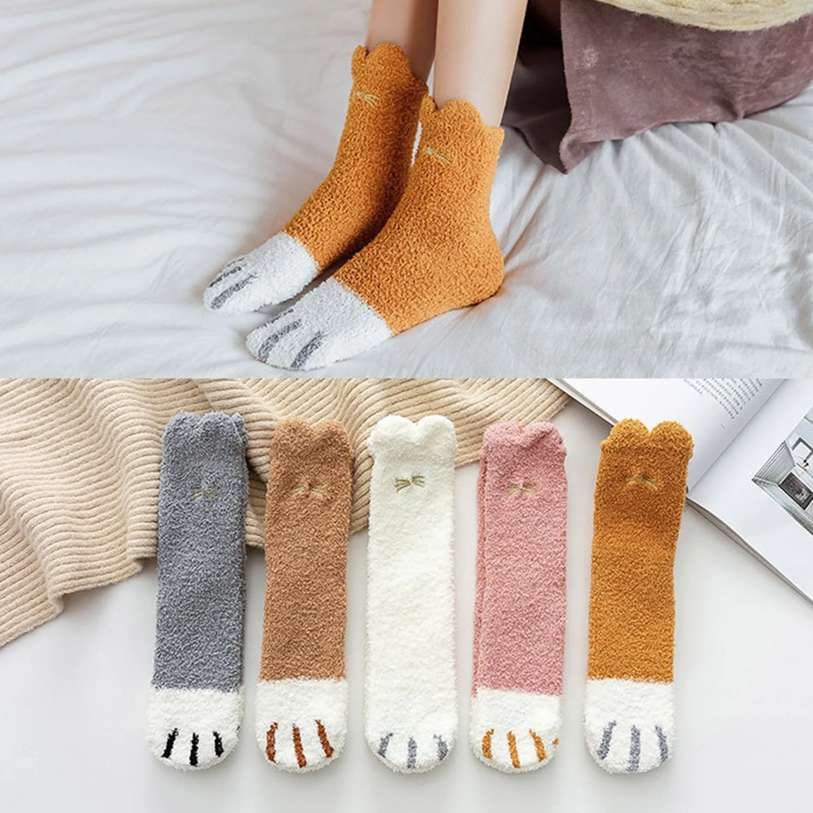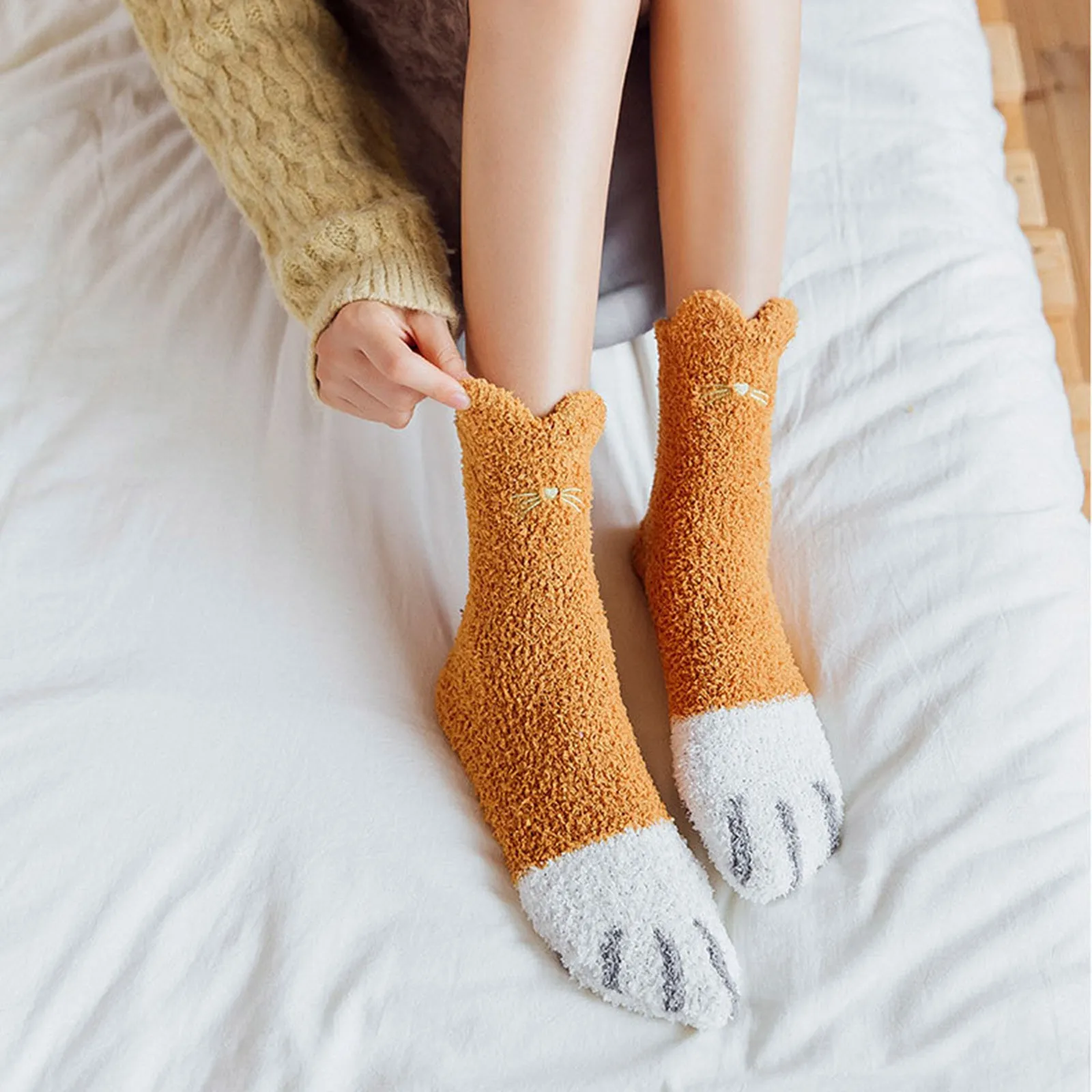 1 пара женских осенне-зимних утепленных бархатных носков кораллового цвета