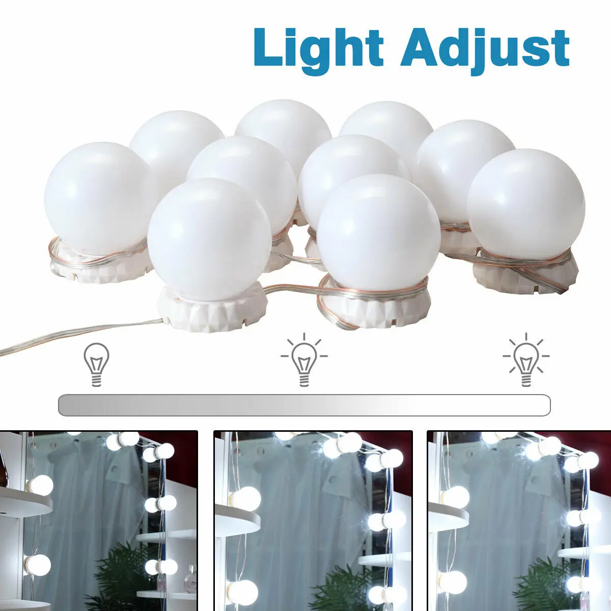 Особенности: -Светодиодный зеркальный светильник Vanity в голливудском стиле, новейший дизайн, усовершенствованная версия, более красивый и удобный. -Usb-порт, лампы и источник питания могут быть подключены через USB многими способами, такими как ноутбук, блок питания, розетка, поэтому это очень удобно при использовании. -Регулировка яркости, яркость может регулироваться от яркого до темного, от темного до яркого, в соответствии с вашими потребностями. -Он оснащен функцией памяти, записывает последний режим освещения, когда вы используете его, и это тот же режим освещения, когда вы используете его снова. -Максимальное расстояние между двумя лампами составляет около 40 см, что делает его подходящим для большинства зеркал. -Самое главное, что излишки проводов скрыты в лампочках, которые не видны снаружи, чтобы ваше зеркало было аккуратным, красивым и элегантным. -Предусмотрены двухсторонние ленты и присоски, лампочки могут быть непосредственно и быстро наклеены на зеркала с лентами или присосками. -Хороший охлаждающий эффект, энергосбережение, длительный срок службы. -Мягкий светильник, высокая светоотдача, отсутствие теплового излучения, отсутствие мерцания, отсутствие пятен, защита глаз, Профессиональный светильник для макияжа. -Используется для макияжа, заполняющий светильник, украшение, зеркальная декоративная лампа, лампа для украшения сцены, лампа для украшения шкафа, студийная декоративная лампа и так далее. -Подходит для свадьбы, дня рождения, Дня Святого Валентина и других праздников. Спецификация: Название продукта: светодиодный светильник Материал: Поликарбонат Входное напряжение: DC5V Мощность: 8 Вт Светильник Цвет: 3 цвета Цвет s (белый/холодный белый/теплый белый) Цветовая температура: (3000-6500K) Разъем: порт USB Лампа Размеры: 3,2 см X 4 см X 4,8 см Количество ламп: 10 шт. Расстояние между 2 лампами: около 40 см Диммируемая: Плавная диммируемая