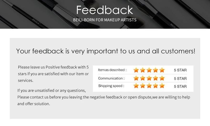 Пожалуйста, оставьте нам положительный отзыв с 5 звездами, если вы удовлетворены нашим товаром или обслуживанием. Ваш отзыв очень важен для нас и всех клиентов! Мы будем благодарны Вам :-) Если вы не удовлетворены или какие-либо вопросы, пожалуйста, свяжитесь с нами, прежде чем оставить отрицательный отзыв или открыть спор, мы готовы помочь и предложить решение :-)