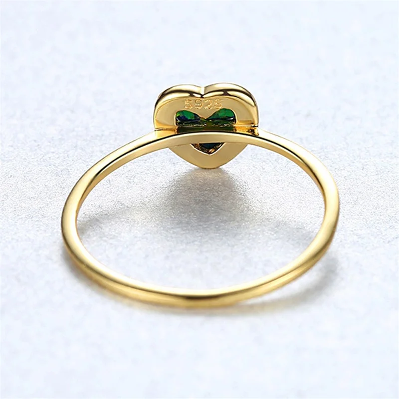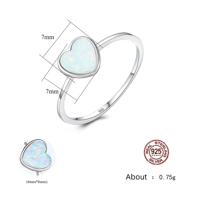 Bague Ringen Trendy Pure Silver 925 Jewelry Ring for Women Charms Heart shaped Opal White Blue Green Opening Adjust Ring Party