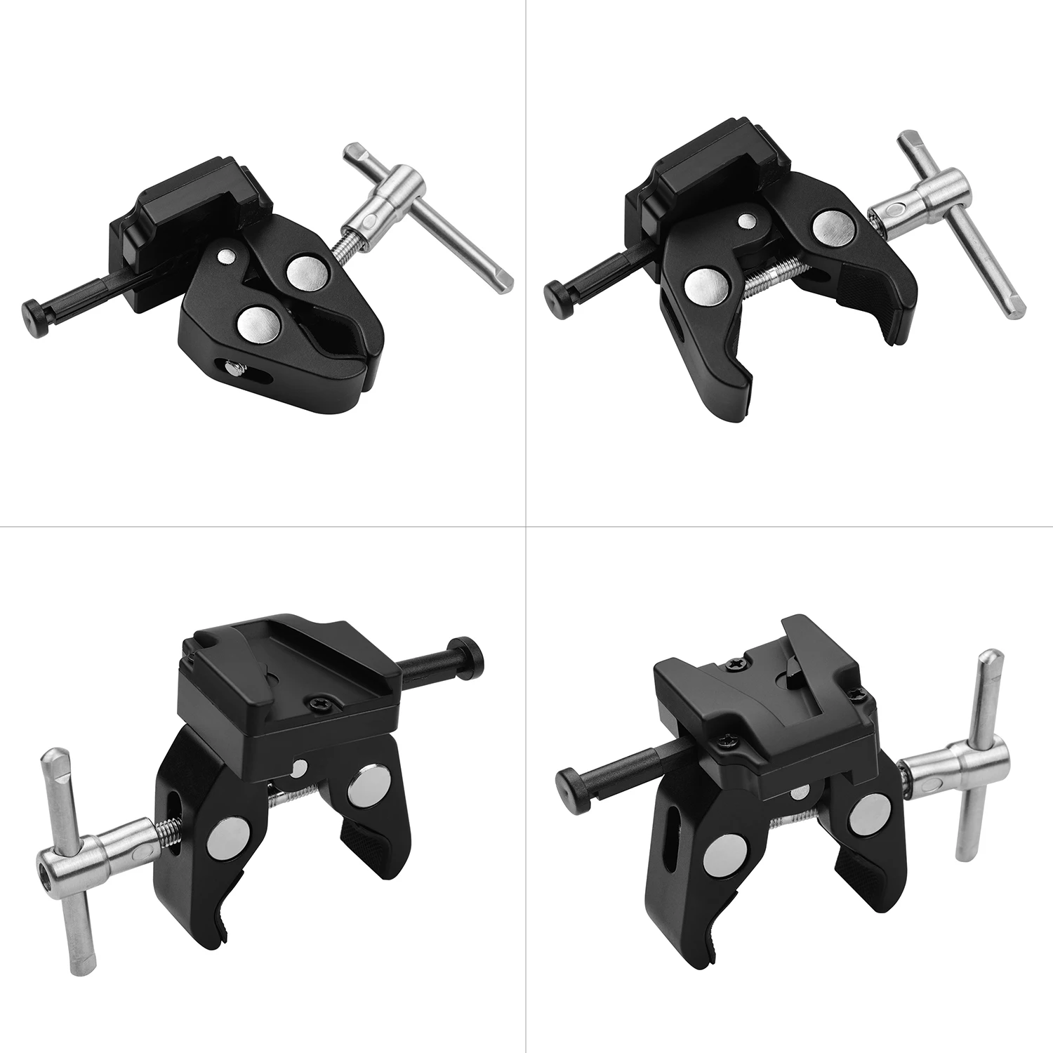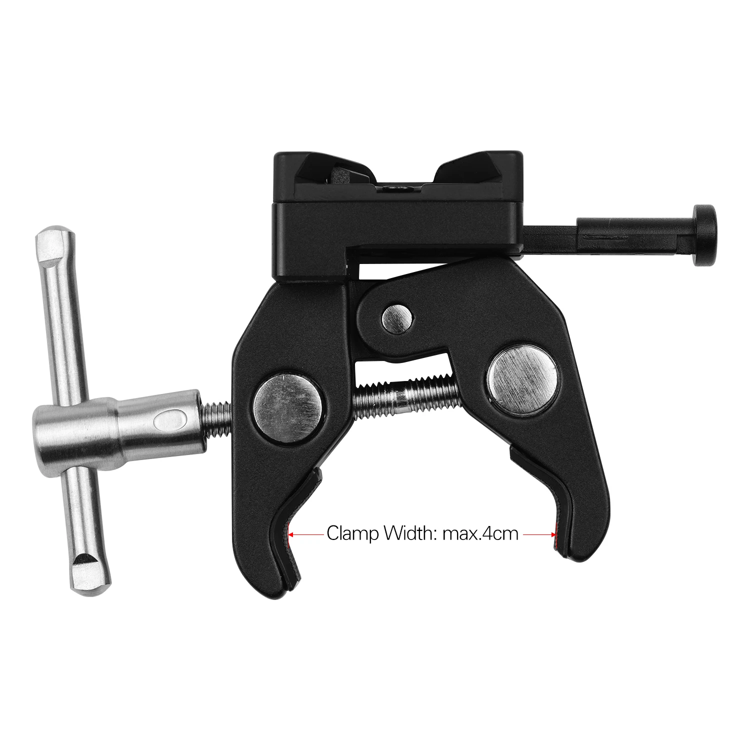 Зажим открывается до 4 см, подходит для большинства труб, ножек штатива и легсветильник подставки.