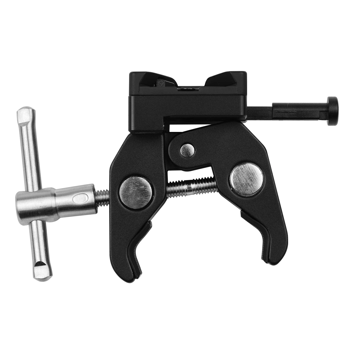 Адаптер с V-образным креплением с зажимом для крепления аккумулятора с V-образным креплением к подставке или штативу.