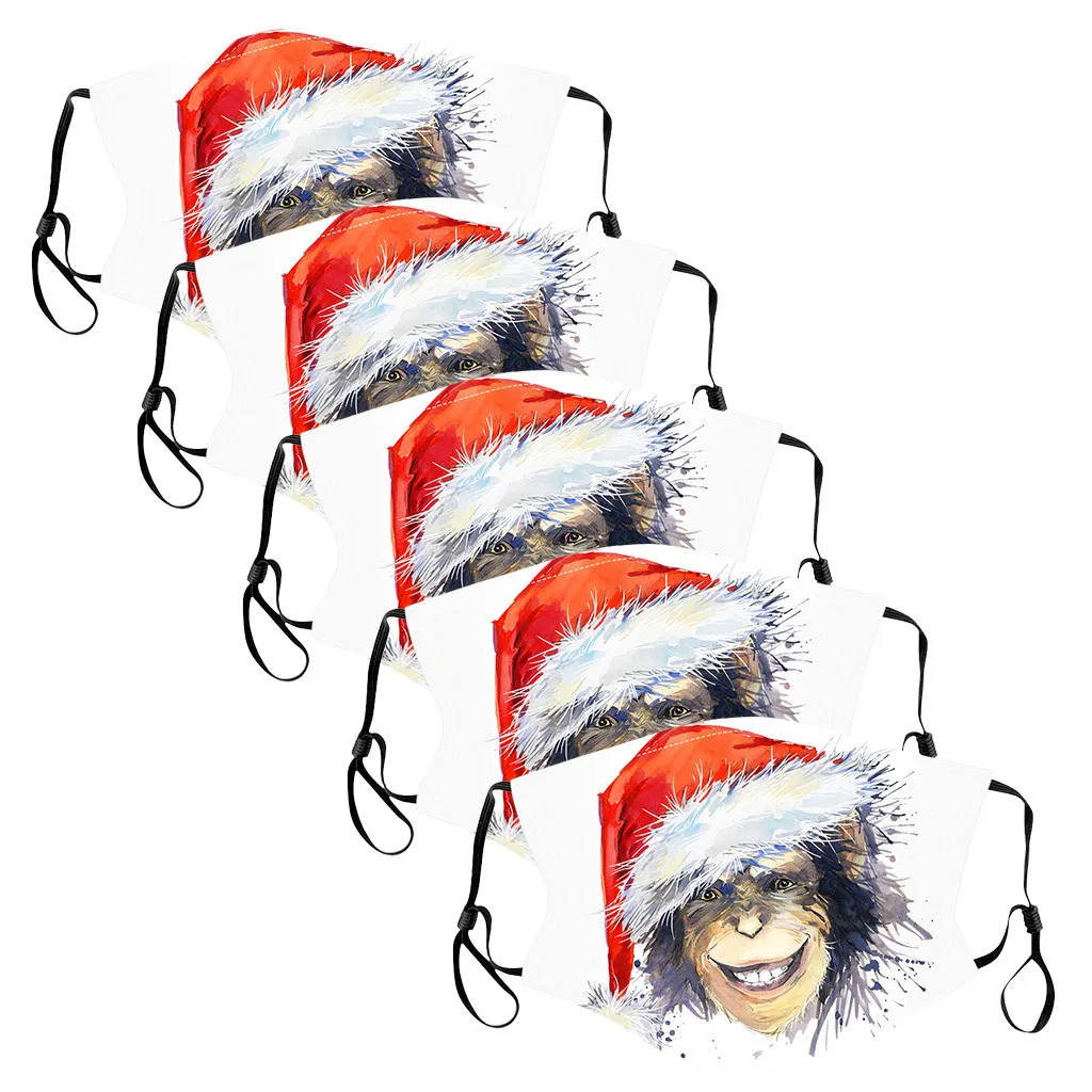 Детские рождественские маски для детей, многоразовые маски для лица, 5 шт.