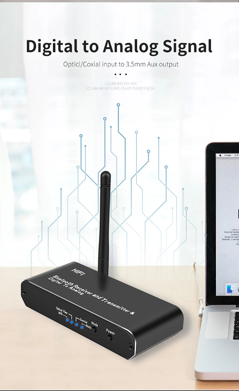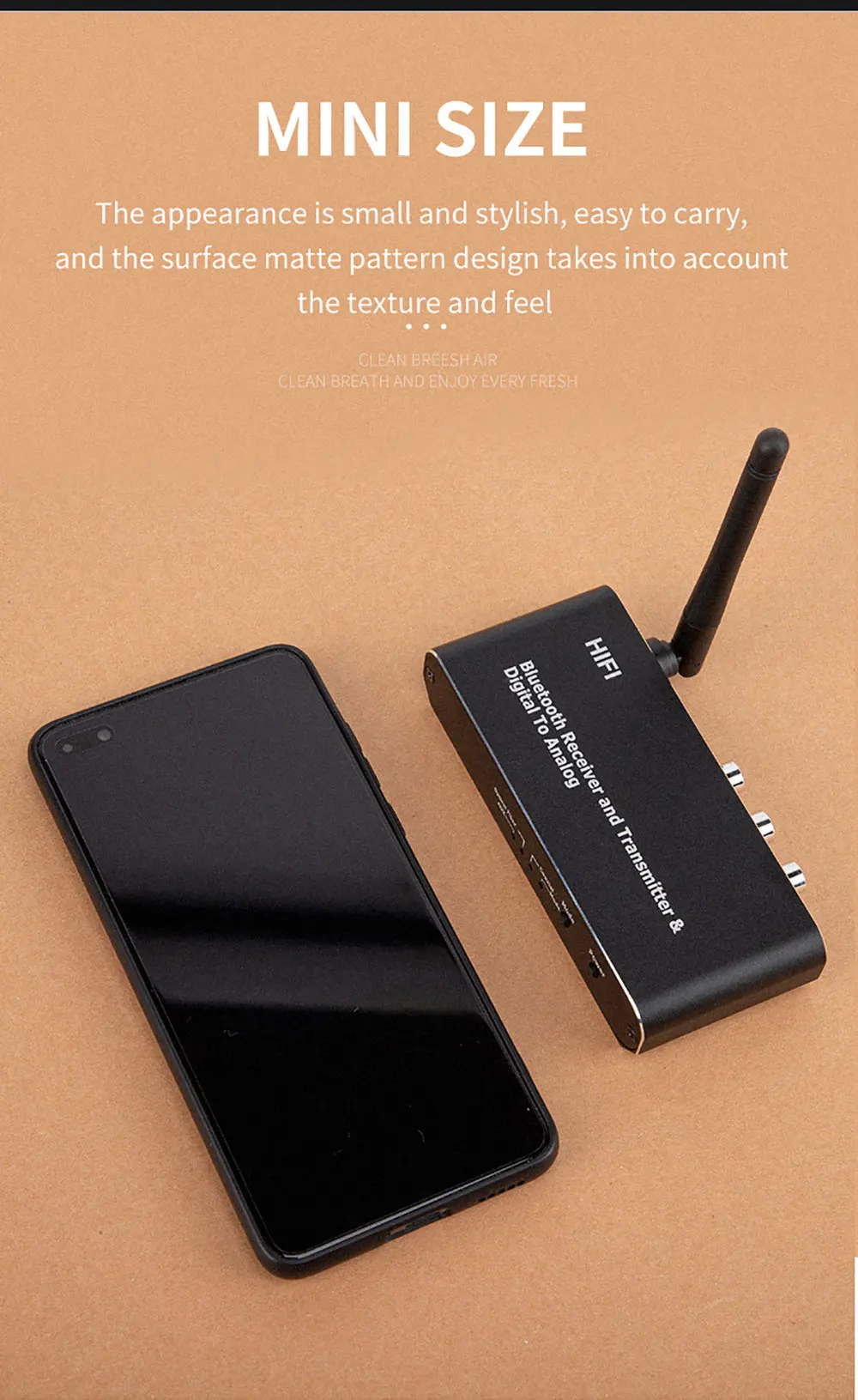 Этот продукт является цифровым оптическим волоконным коаксиальным преобразованием аналогового аудио сигнала и Bluetooth аудио приемное устройство передатчика. Продукт прост в эксплуатации и может свободно получать и передавать все аудио. Через этот продукт цифровое аудио может быть преобразовано в аналоговые аудиосигналы. Музыку на мобильный телефон можно передавать по беспроводной сети на аудио оборудование, подходит для ТВ-рекреационной машины, CD-плеера MP3, И т. Д. ФТ прекрасно решает ограничение аудио оборудования и расширяет функции различных аудио оборудования