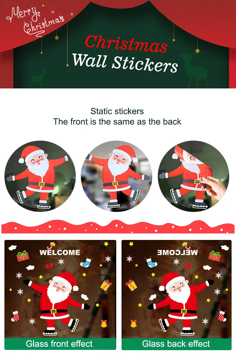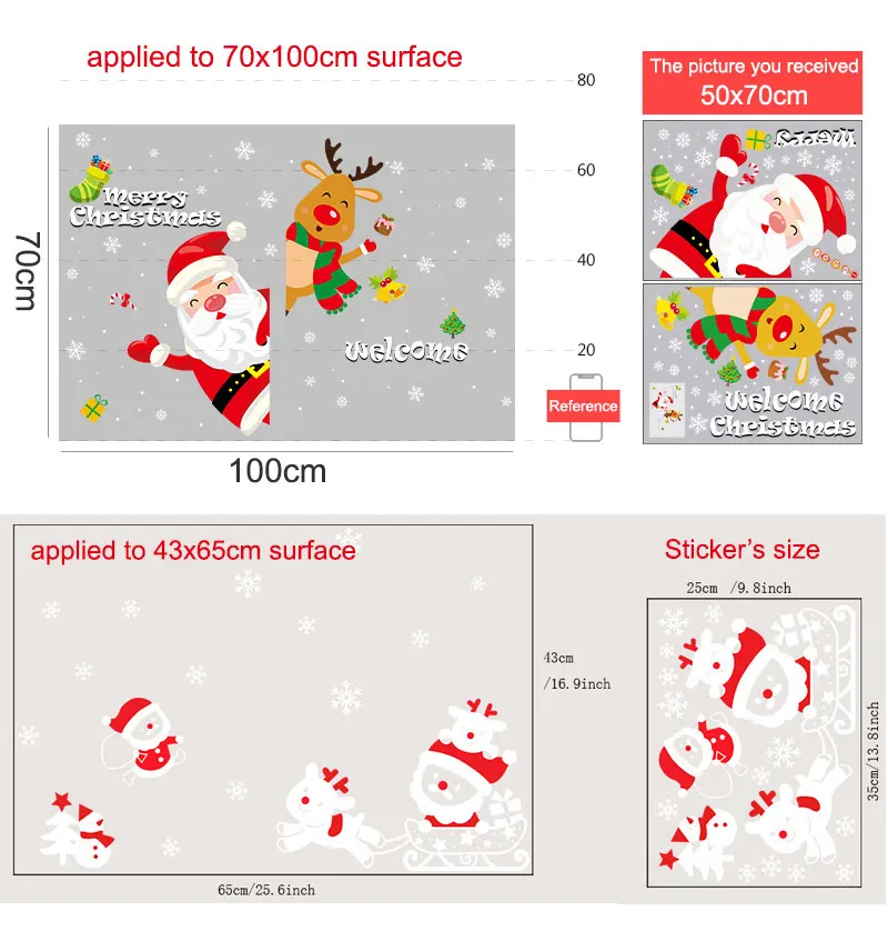 Description:Color: as shownMaterial: PVCSize: 25x35cm, 50x70cm, 60x90cm Package:A Piece Wall sticker Note: Clean the windows at first with no dust in order to stick it sturdily and in flat.Be careful when putting them on the window that the edges don't fold or roll over.High Quality Material: Christmas window sticker are made of high quality removable PVC material, eco-friendly and reusable, sturdy to stick to the window and easy to peel off without residue, before stick it to the window, make sure the surface clean and smooth.