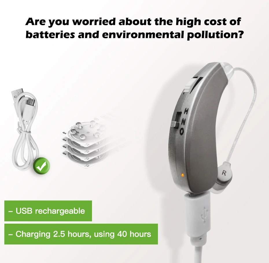 ③ Usb-зарядка: не Аккумуляторный слуховой аппарат, экономит затраты, защищает окружающую среду.