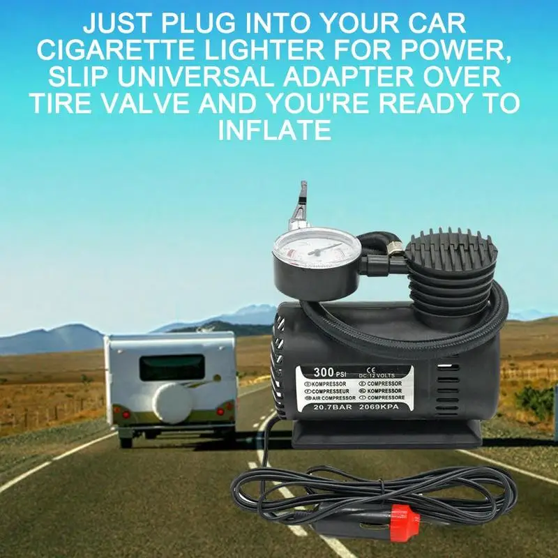 Просто подключите к прикуривателю автомобиля для питания, проскальзывайте Универсальный адаптер через клапан шины, и вы готовы надуть.