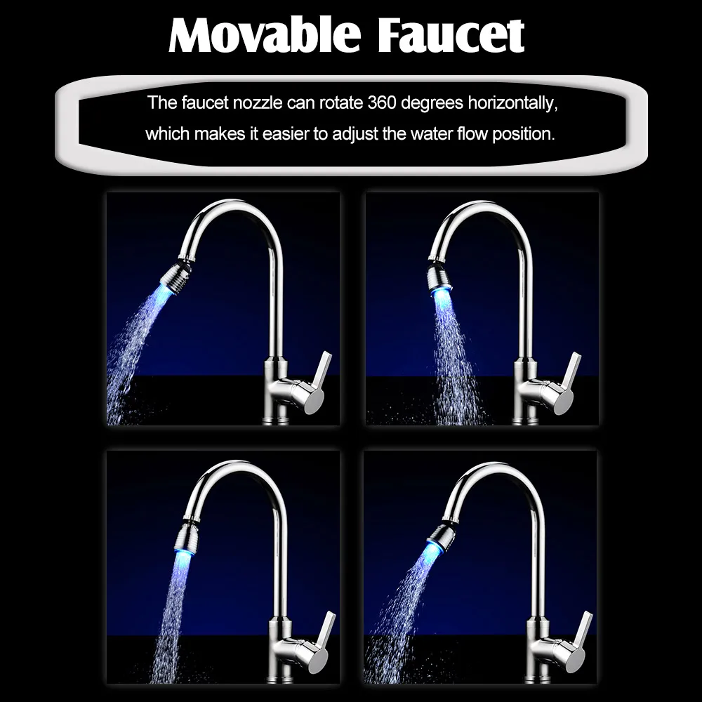 ● 2 типа на выбор: Есть 2 типа светодиодных водопроводных кранов, включая цветной светильник, мигающий для изменения, И кран для воды с RGB светильник s изменяется при различных температурах.