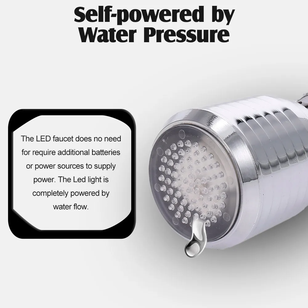 ● Автономное питание от давления воды: Светодиодный водопроводный кран не требует дополнительных батарей или источников питания для питания. Светодиодный светильник полностью питается от потока воды, экономии энергии.