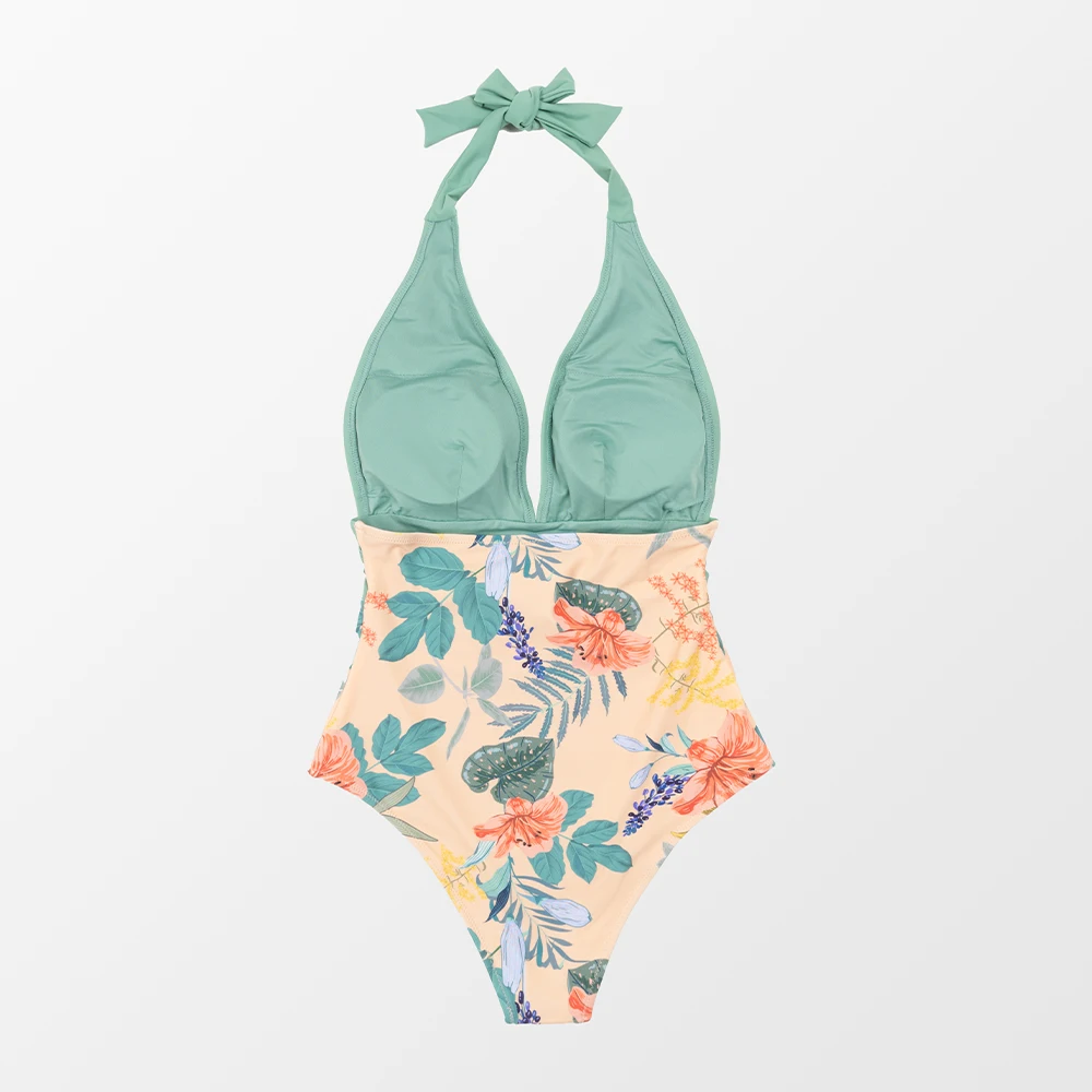 Наш Цельный купальник с цветочным и черным вырезом на шее отлично смотрится на каждом теле! Этот купальный костюм отличается глубоким v-образным вырезом и рюшами на груди и мягкими чашечками для дополнительной поддержки.