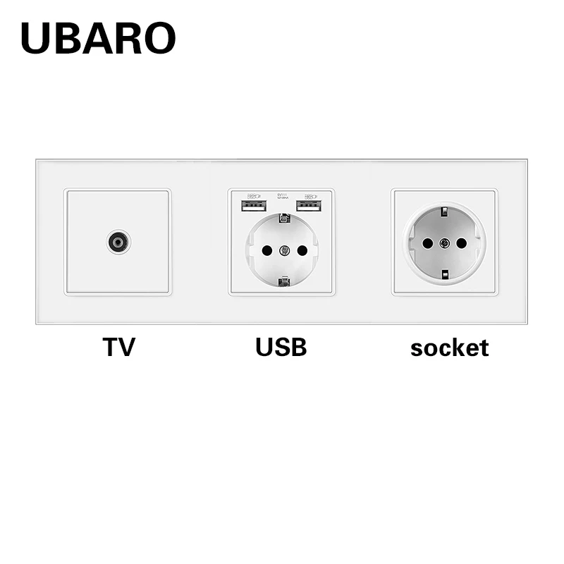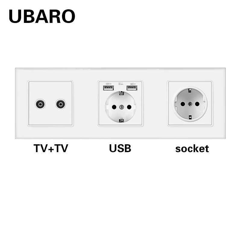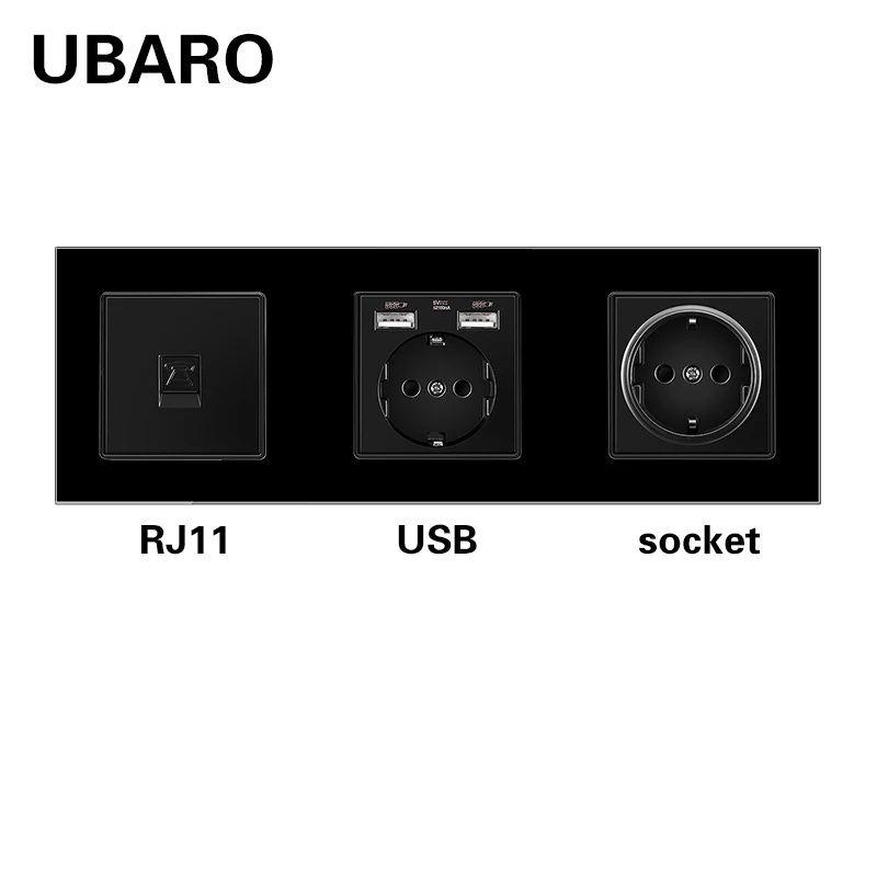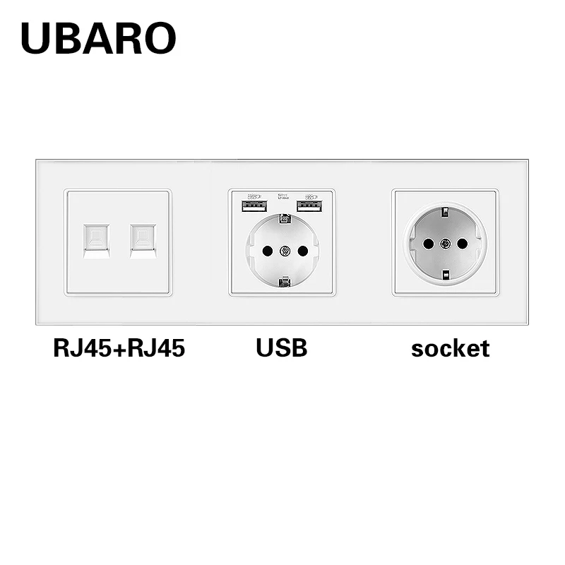 UBARO немецкая стандартная стенная розетка из закаленного стекла Combinationt RJ45 RJ11 ТВ USB подключение терминал домашняя розетка AC100-250V 16A