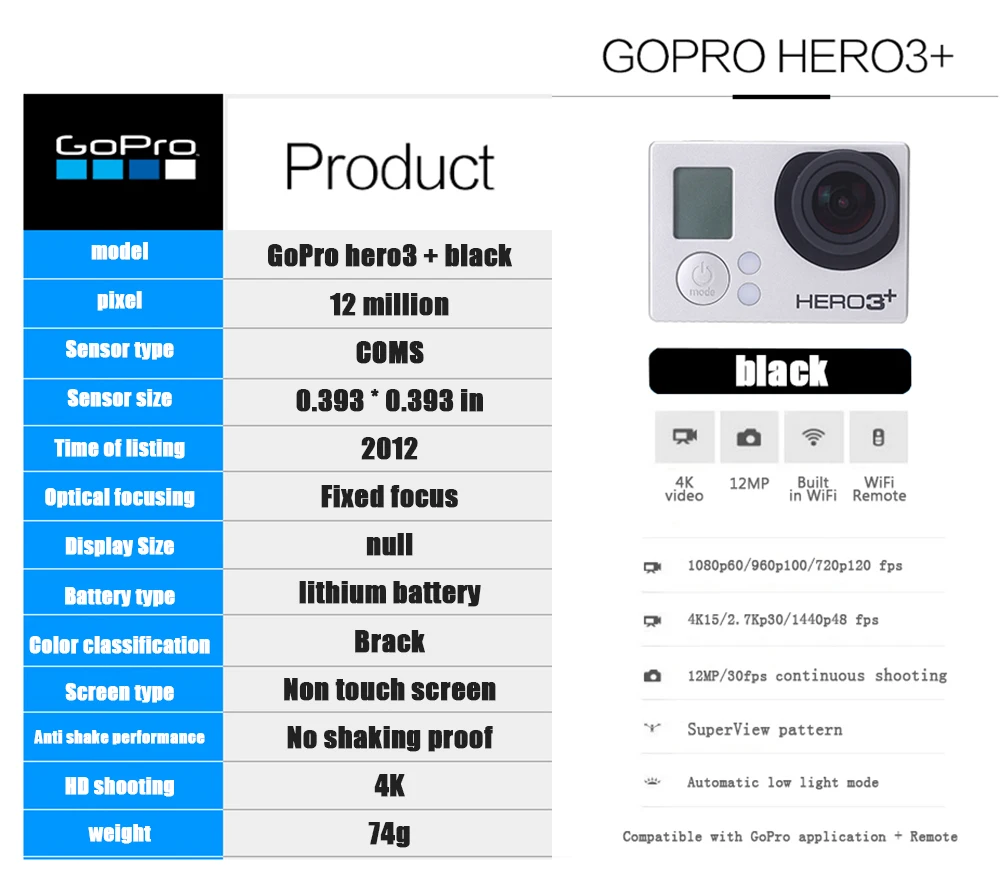 Экшн-Камера Gopro HERO 3 + BLACK, уличная спортивная камера с 4K Ultra HD Video gopro 3 +