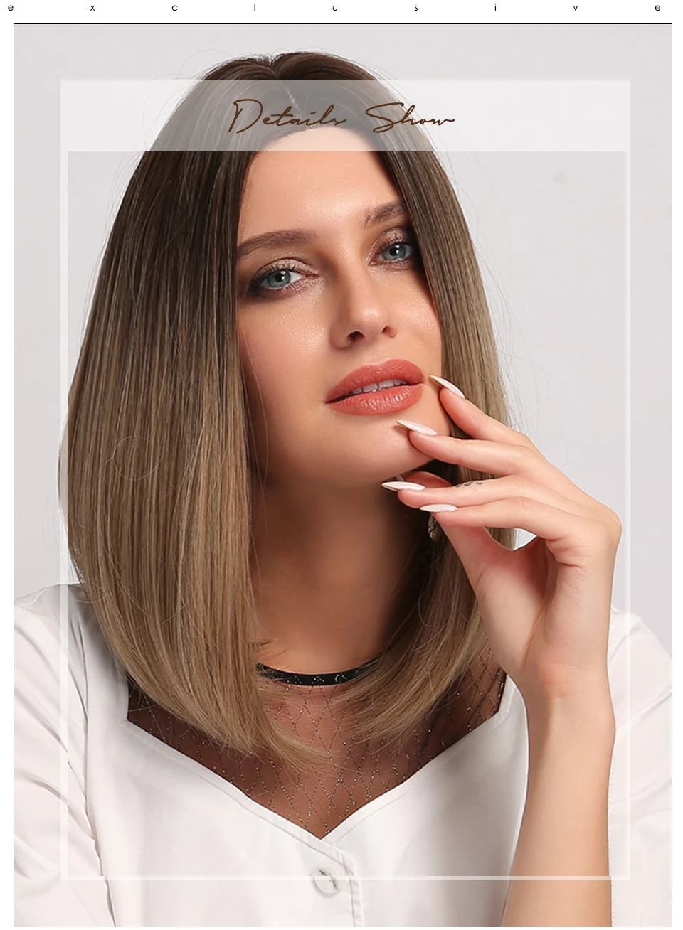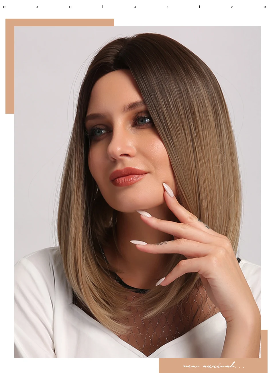 GEMMA, Средние прямые синтетические волосы, парики, Омбре, черные, коричневые, парики, косплей, натуральная средняя часть, Боб, длина плеча, термостойкие