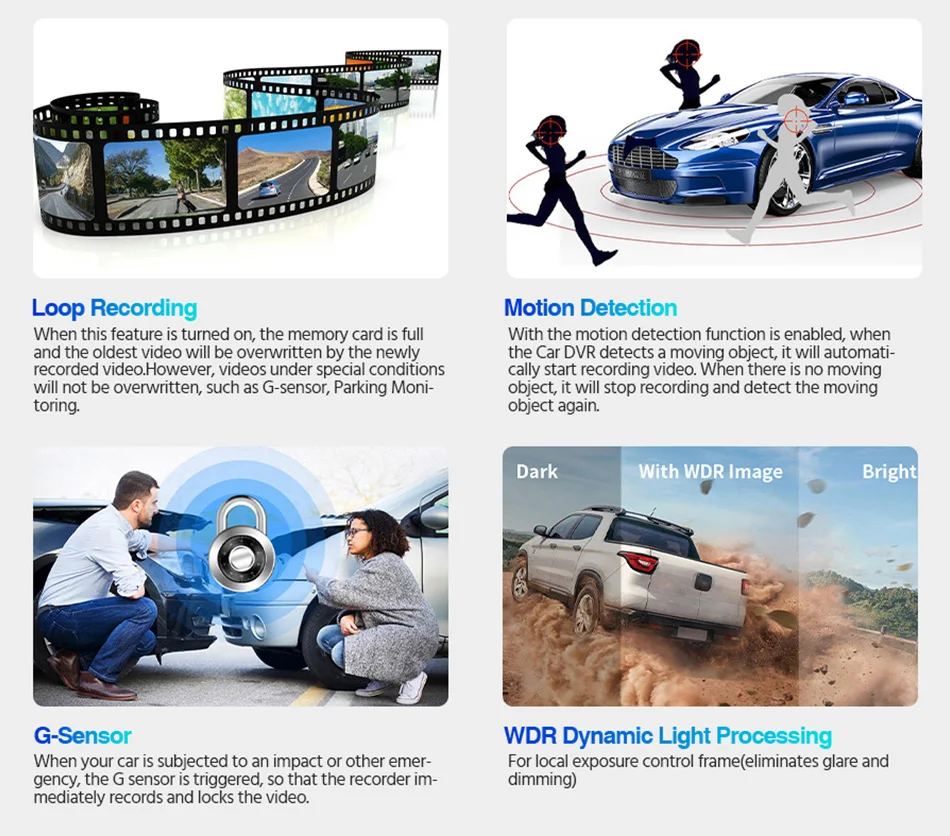 Водительский рекордер с чипом Novatek 96656, стабильная производительность, плавная работа Профессиональная технология изображения для высокого качества изображения.