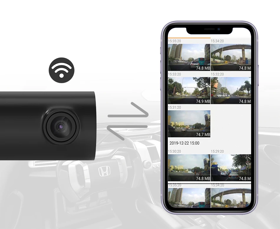 Загрузите и установите «roadcam'' на телефон Android или iPhone, чтобы смотреть видео в реальном времени и управлять через приложение.