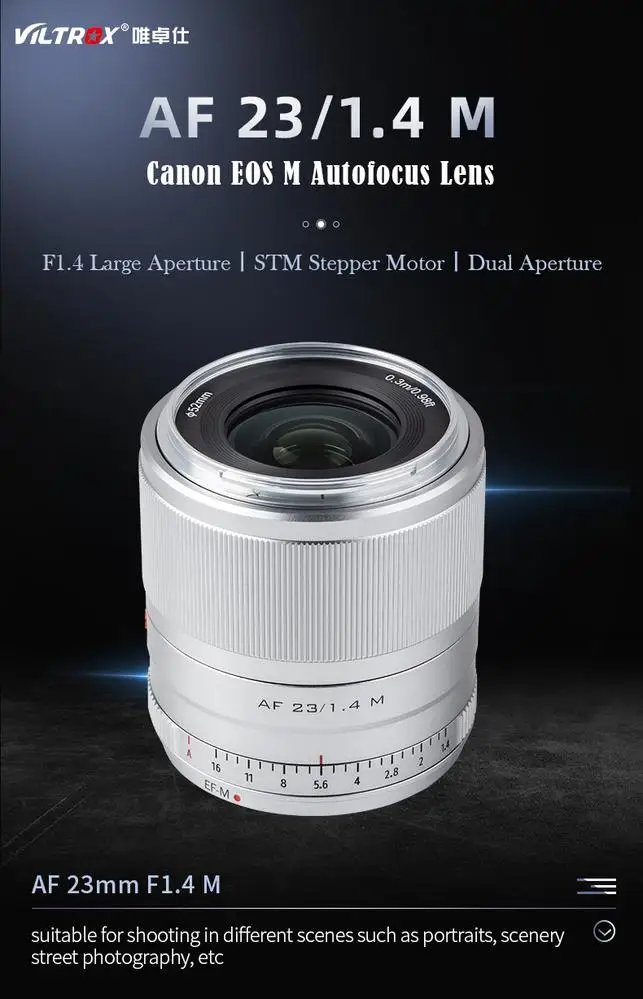 Объектив Viltrox 23 мм f1.4 STM EF-M с автофокусом APS-C для камер Canon EOS M M5 M6 Mark II M200 M50