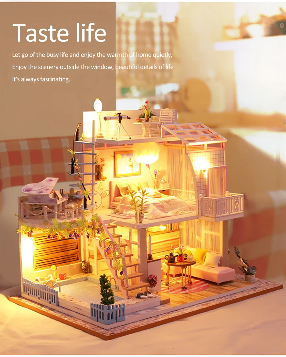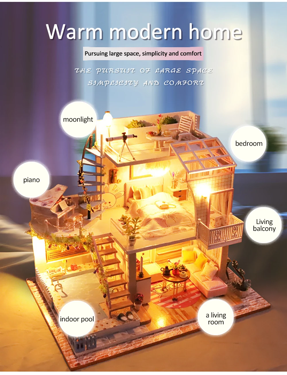 Diy Миниатюрный Кукольный домик набор деревянный дом с светодиодный светильник