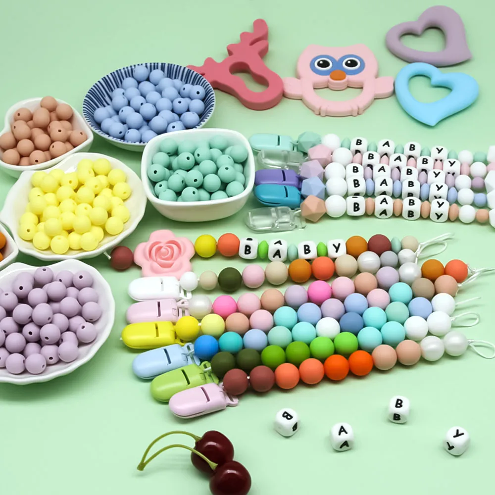 Силиконовый Прорезыватель для зубов предназначен для младенцев, поэтому вы можете сплетать вручную браслет naceklace, чтобы сделать детскую красочную жевательную цепочку