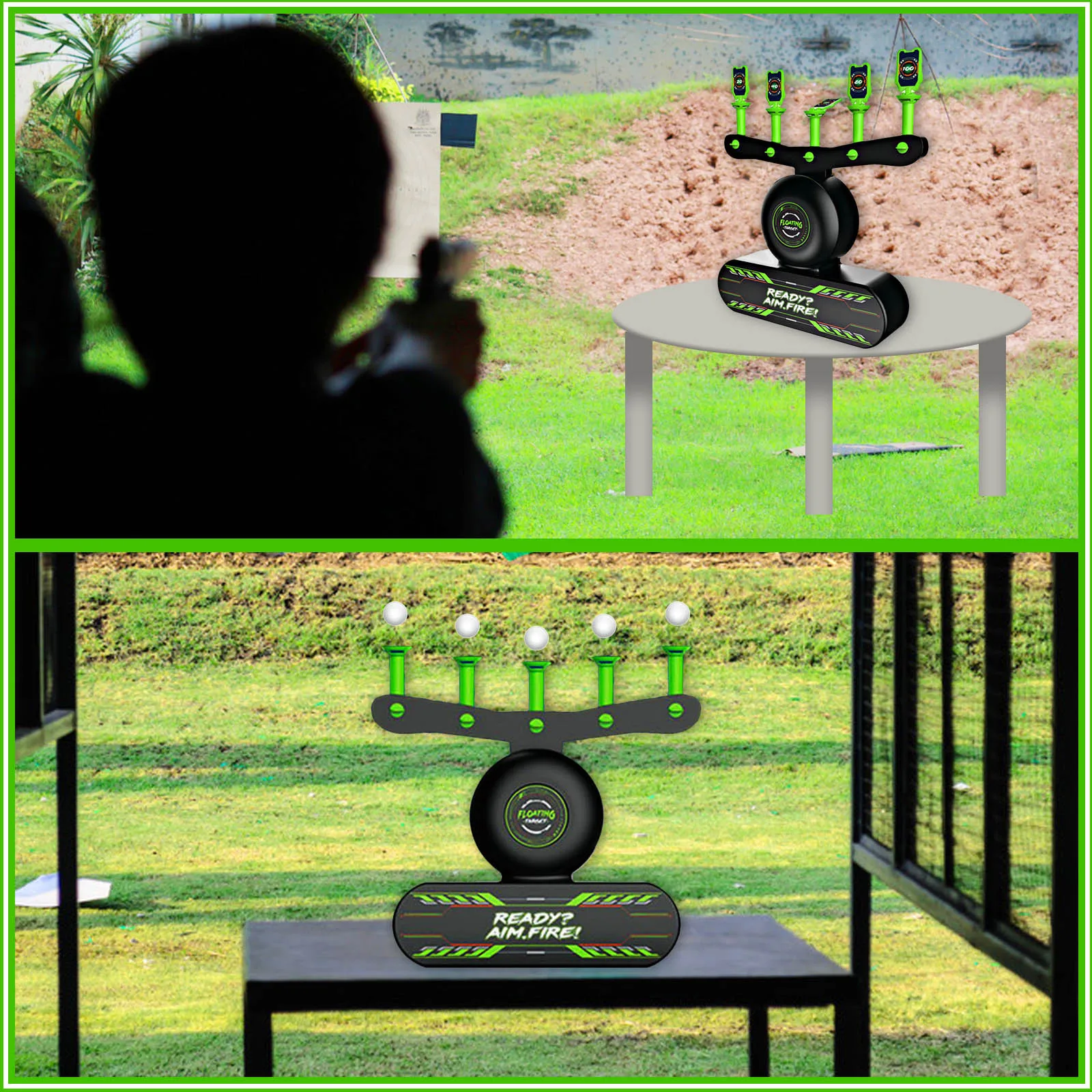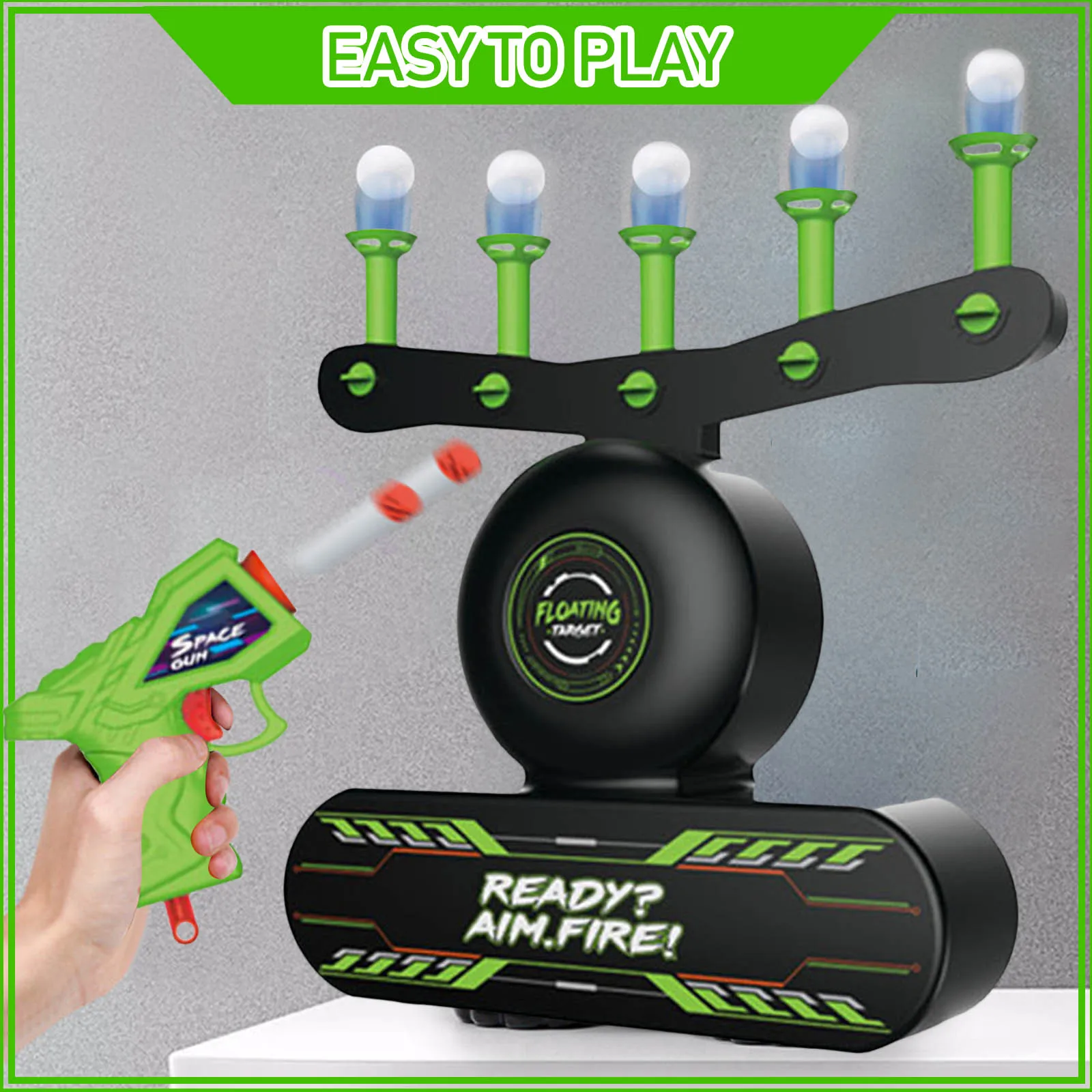 Легко играть: Загрузите шары на пьедесталы, включите питание и наблюдайте, как цели плавают в воздухе-теперь используйте свой игрушечный пистолет и выньте зависящие цели!