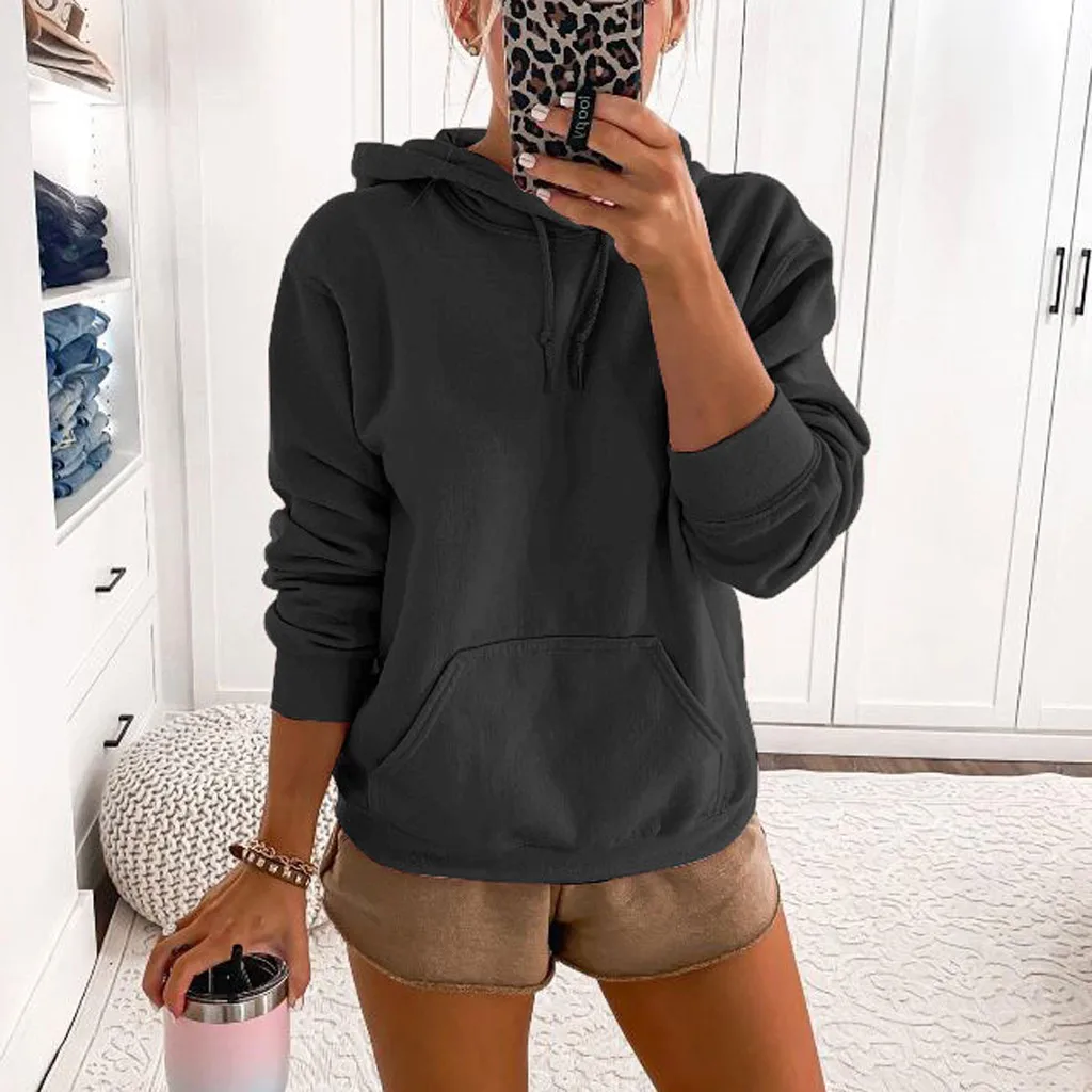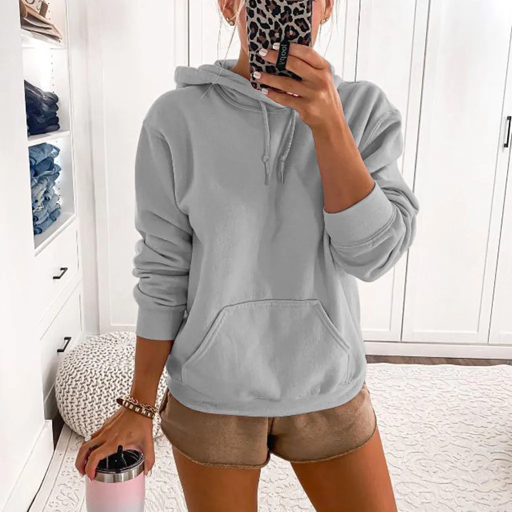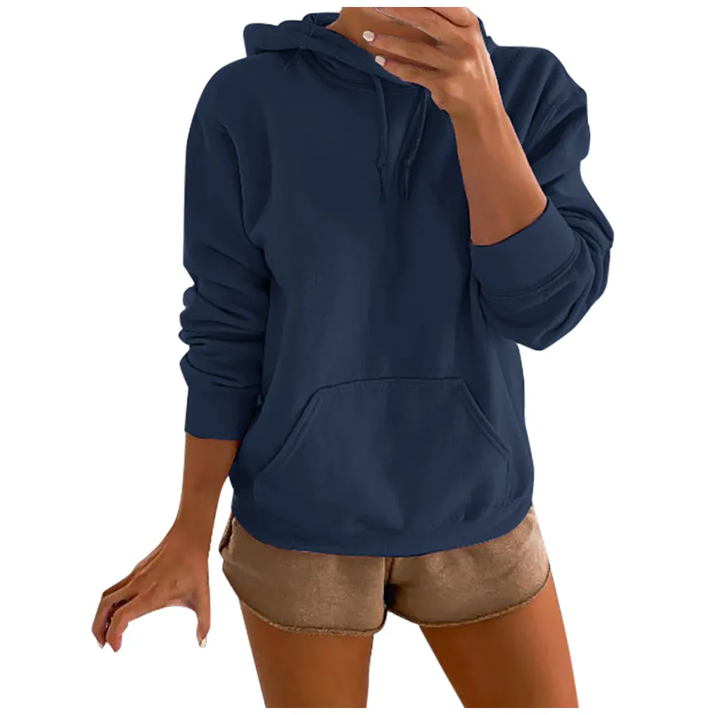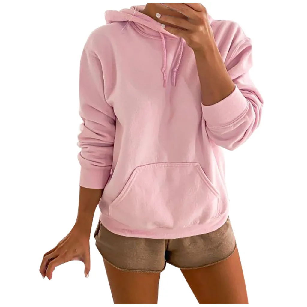 Fashion Women Solid Hooded Pocket Long Sleeves Casual Sweatshirt Blouse Tops