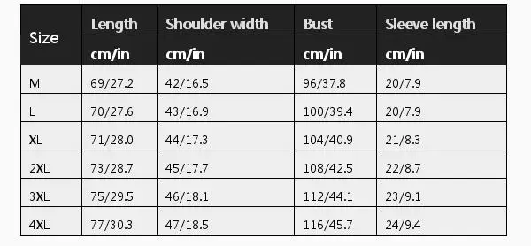 Размер: длина; Ширина плеч; Обхват груди; Длина рукава