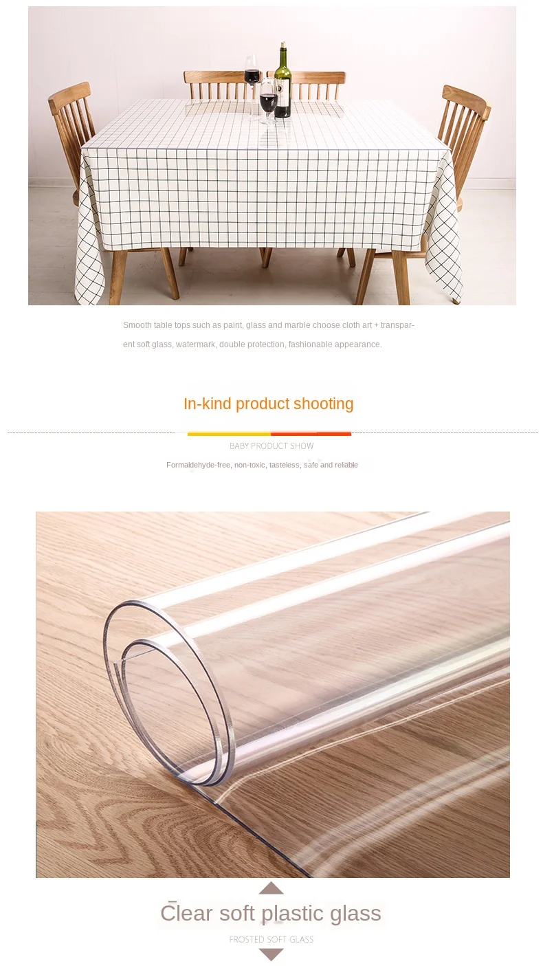 Tablecloths Transparent Waterproof Oil-proof Kitchen Dining Room Desk Coffee Table Cover Pad 1.0mm Soft Glass TPU Home Table Mat