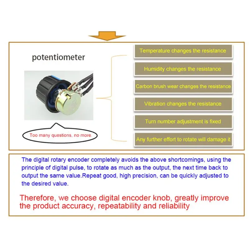 1,3 ручка цифрового кодировщика регулирует скорость двигателя, которая является более точной и последовательной, чем обычный потенциометр.