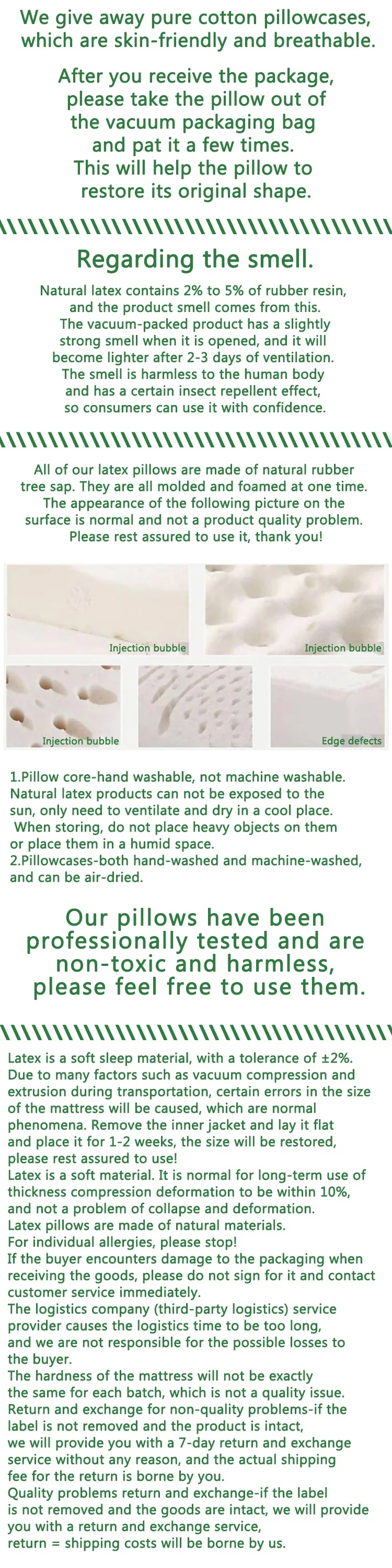 Set include: Pillow core x 1, Lining x 1, Pillowcase x 1This Health Care Latex pillow is also the massager and sleep helper, with pretty good design, the multiple raised points are soft and will offer very good support for your neck, also you can feel the massage effect on your head and neck.Millions of holes can release heat and moisture created by human body, make your head and neck cool and comfortable, in which you can feel much softer than the memory pillows and other types of pillows.The special 10 cm and 12 cm difference of the pillow will offer you great experience on side sleep or face-up sleep, which will make you more easier to get deep sleep.Natural Latex material is no harm to your body, anti-mite and anti stiff sleeping, correct your spine very effectively.High-grade natural latex pillow, durable, not bad for ten yearsWe have two major production bases in China and Thailand globally.We have three major shipping warehouses worldwide (Russia. Thailand. China) to meet the needs of global customers!can rest assured to buy! In most countries around the world, we support returns without a reason! So don't worryIf you don’t like it, you can return it for no reason!Всем приветики) Девчонки лосинки огонь! Всем советую! Очень приятные к телу, очень удобные, хорошо тянутся, прекрасно подчеркивают фигуру и срывают... Читать отзыв полностью...
